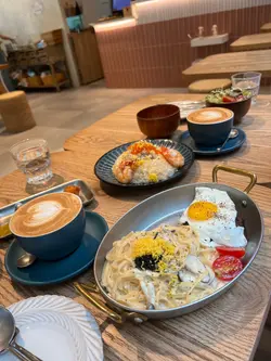 ✨️西環高質咖啡店「不籽是咖啡」☕坐得舒服又寧靜😁飲咖啡享受下午茶💯✨今天推薦和介紹一間位於西環藝里坊的一間坐得舒服又寧靜的咖啡店就是「不籽是咖啡」。聽佢個名就知道不是只賣咖啡咁簡單😆仲有意粉,烏冬,小食,窩夫吐司等。✨️今次我們在這裡吃下午茶傾下計,我們吃了一份乾炒大蝦蒜香意粉。飲品就叫了一杯焦糖咖啡,紫薯牛乳😆✨️下午茶的份量就不算太大碟,不過真係炒得幾香又唔太油,大蝦算可以呀😆焦糖咖啡好甜好香濃焦糖味,有拉花靚靚圖案。紫薯牛乳果杯就牛乳味多過紫薯味少少,紫薯味多番啲就會再好飲啲😁💯✨️這裡沒有用餐時間,可以當咖啡店買番飲品傾下計,看下書或用電腦工作也可,體驗文青愉快的一天😍📍不籽是咖啡📍西營盤忠正街8號藝里坊・1號地下1號舖…查看更多