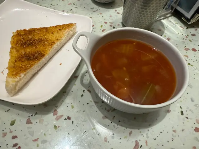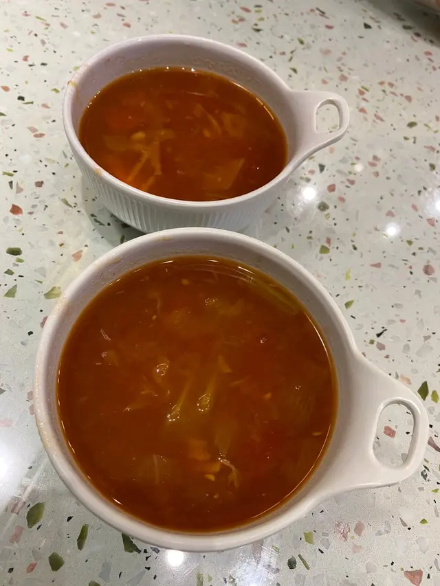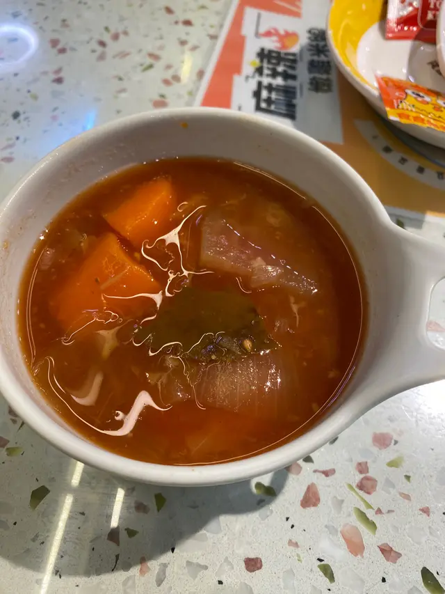 啲套餐寫明奉送基本熱飲,不過,落單無耐,店員就奉上例湯,真有心,雖然無得揀,喺羅宋湯,但我哋都啱飲,而且,味道夠濃,酸香醒胃,裡面又多料喎,真唔錯。