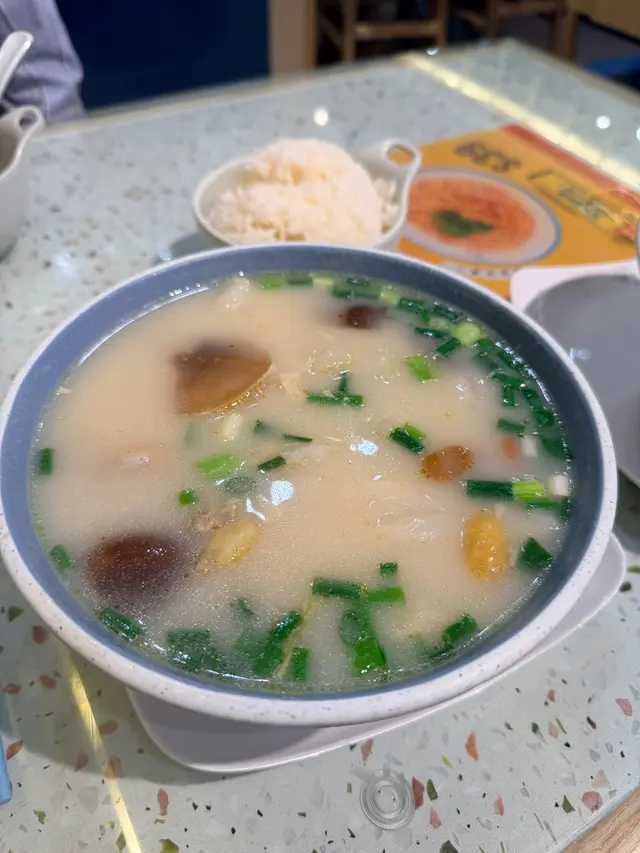 肥隔離枱啲鐵板餐咋咋聲,都想試試店家嘅鐵板餐,不過,顧及老友,我都揀咗個幾健康嘅鮮魚湯泡飯。雖然話泡飯,但上菜時喺湯飯分開上,所以,小弟倒大半碗飯落湯,小半碗就撈豉汁食。講番個泡飯,啲雞真喺幾滑,以為份量唔多,卻喺越食越有咁,個人而言,花膠都OK,再炆腍身啲就更好,且有很多菇菌,而魚湯滲入少少雞油,就更加正,伴上飯,真喺好味。