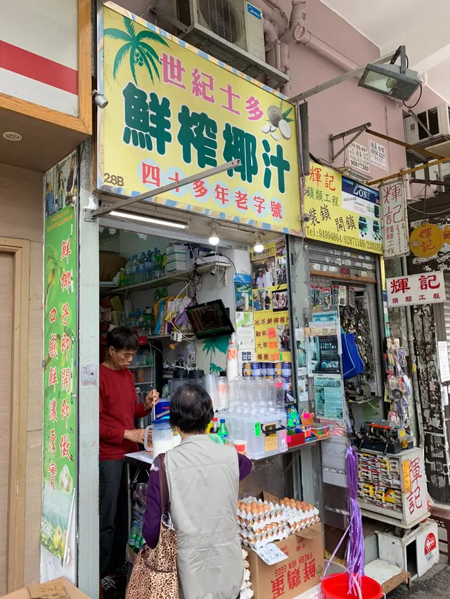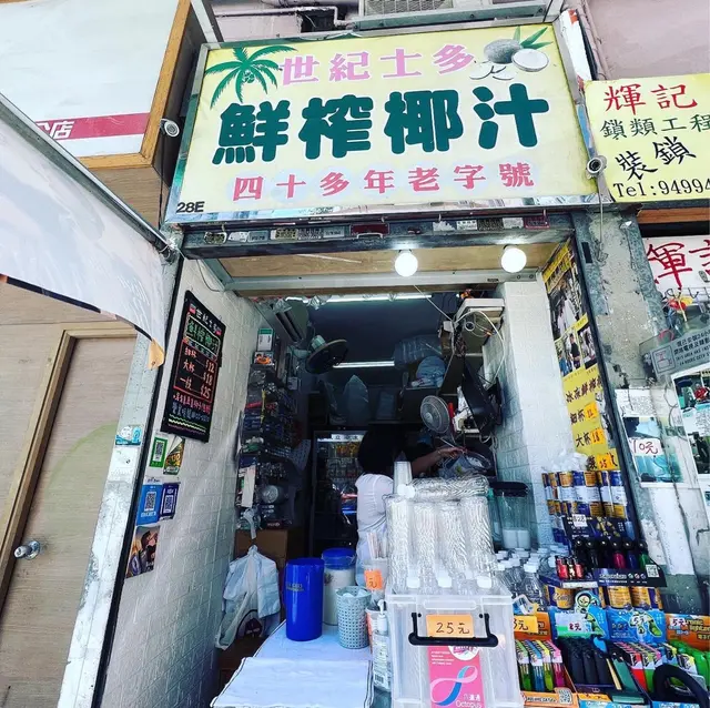今日經過土瓜灣一條橫街,突然傳出榨汁聲。四圍望下,原來對面有一間世紀士多-鮮榨椰汁,而且係一間開業已經40年嘅老店。去到門口,見到原來已經有好多唔同媒體都報導過佢,咁一場黎,點都要支持下。 鋪頭門面不大,除左椰汁,仲連原個椰子都有得賣。椰汁分別有鈿杯($12),大杯($18),樽裝($25)。一場黎到就買支樽裝支持下。 樽裝其實都好大支,飲落都好滑同埋有椰子香味,間中仲食到少少椰子肉。不過就有少少甜。 呢類型老店,真係要舊區先會搵到,依家已經買少見少。 查看更多