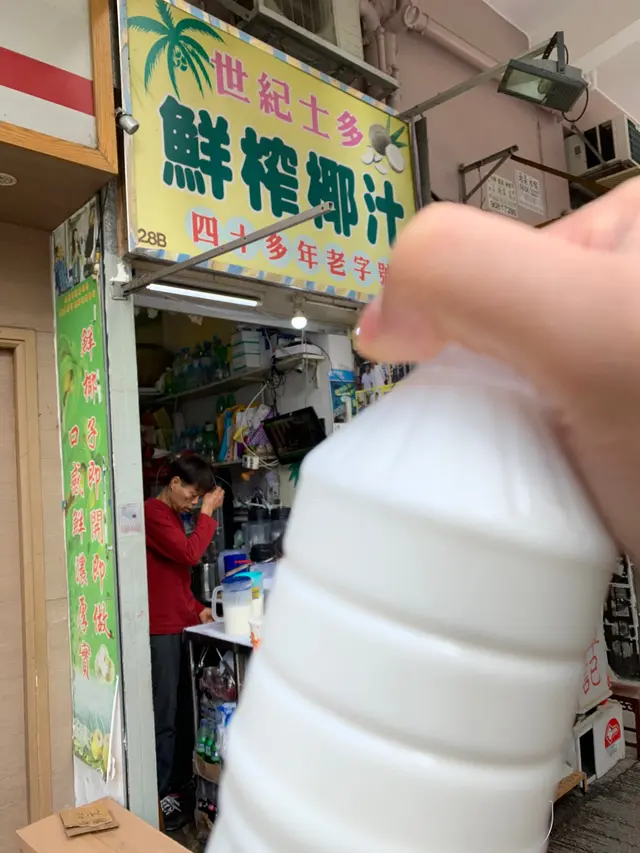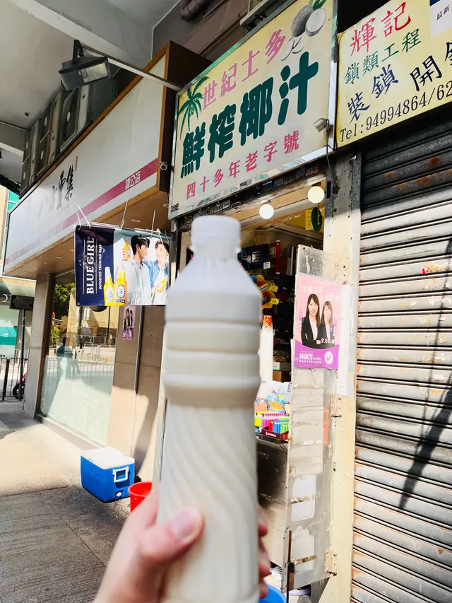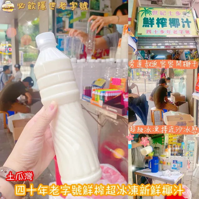 🥥土瓜灣四十年老字號鮮榨超冰凍接近沙冰質感新鮮椰汁🥥平時都真係比較少會去土瓜灣,在呢個舊區入面有隱藏了好多老字號,如果去開呢頭一定要試下呢間,在我心目中最好飲既椰汁🥢呢間小店已經有四十年歷史,小小一間真係毫不起眼,但佢地專注只賣一樣飲品,旁邊會有個叔叔開密密手咁開椰子,會喺你面前即刻入樽🥢買完非常建議即買即飲,因為會f飲到椰汁帶少少碎冰,有少少似飲緊椰子沙冰,滿滿新鮮椰子的味道,因為夠凍所以覺得甜度剛剛好,雖然大大一支好快飲完都唔夠喉,熱辣辣夏天真係超級爽🥢當而家買杯手搖都三十幾蚊,呢個價錢同質素飲到高質椰汁價錢真心抵,舊式老字號店而家越來越少,真係要好好珍惜🥢椰汁$22 / 樽📍 世紀士多 (土瓜灣)土瓜灣譚公道28號地下查看更多