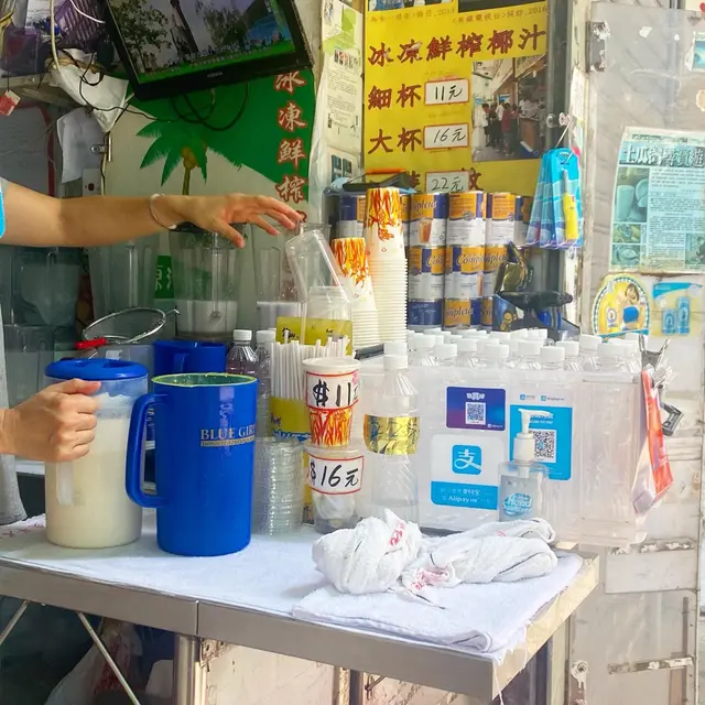 今年啲天氣相比往年熱.所謂一年比一年更熱.每年熱天來得更早及更長!今日嚟開土瓜灣.尋找惜日舊區美食.係地鐵站行過嚟.唔算好遠.幾分鐘行程.已經全身濕咗一大片.我哋第一站要給身體涼涼先.來一樽冰🧊涼椰汁.呢處椰汁好出名.來到門口旁邊見到阿叔.默默地把椰子去椰衣及破殼拆肉.舖面個姨姨忙碌把椰肉加冰🧊在攪拌機調配椰汁.最後把椰汁入樽.呢度賣椰汁價目在底下:👇 細杯 $12元 大杯 $18元 樽裝 $25元我哋兩個人賣咗一枝.首先講吓椰汁的味道.椰汁好香.椰漿味好突出.加上冰🧊塊容解.把濃濃椰漿味及甜度中和.飲落即刻來個好似入咗冰箱的冰涼感覺!查看更多