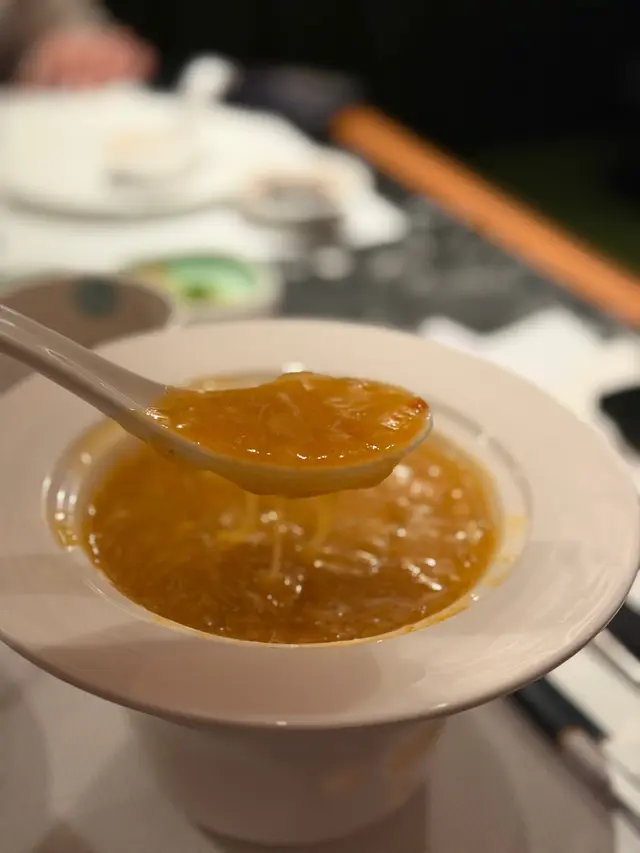 今次我地去左尖沙咀apple store買電話,book左對面海港城一間中菜廳食飯,諗住開心食好d,餐廳有個大閘蟹宴套餐做緊特價,我地就係為左黎食呢個啦😄餐廳雖然係中菜廳,但佢唔係平時茶樓咁好熱鬧既感覺,佢比較優雅寧靜,更加間開好多細房,令每位客人都可以自己一枱舒服用餐😌六兩大閘蟹 珍饈八味金秋宴($598一位)个園滬式拼盤分別有4款小食既頭盤,糟香醉鮑魚,上海蔥油海蜇絲,糖醋小排骨,煙燻溏心蛋,開胃組合,碎鮑魚好入味,溏心蛋加左d胡椒粉又幾好食😋个園現拆蟹粉燴魚翅新鮮拆解蟹肉燴頂級魚翅,蟹香濃厚,湯汁鮮甜😍蟹粉翡翠牡丹蝦球個蝦球大大隻,鮮甜彈牙,下面既蟹粉都好濃既蟹香味🦐清蒸江蘇六両大閘蟹今餐既主角,江蘇陽澄湖大閘蟹,新鮮蒸好,六両大大隻,蟹黃膏滿,蟹肉彈牙,仲有個薑醋醬可以點黎食🦀私宴海派燻魚配芋餅上面既燻魚做到表層香脆,內裡魚肉好滑,下面既芋餅口感有d似魚鯪魚肉,唔係粉狀既芋頭🐟揚州蘿蔔扣花膠花膠食到彈牙既感覺,蘿蔔煮得夠火候,夠淋吸曬d汁,本身佢又好甜👍🏻原隻蟹粉小籠包蟹粉小籠包入面充滿蟹粉,咬開即爆汁,啖啖蟹香味湧出👏🏻桂花夠薑芝麻湯圓個湯圓芝麻香濃爆餡,係個湯真係好夠薑,我覺得辣左少少,唔洗咁夠薑就最好😆呢度食飯真係食得出每一道餸由食材到烹調方式,去到擺盤都係做得好好,服務同環境亦都係好高級,完全同平時酒樓食飯個感覺係唔同,食完係好滿足地走🥰…查看更多