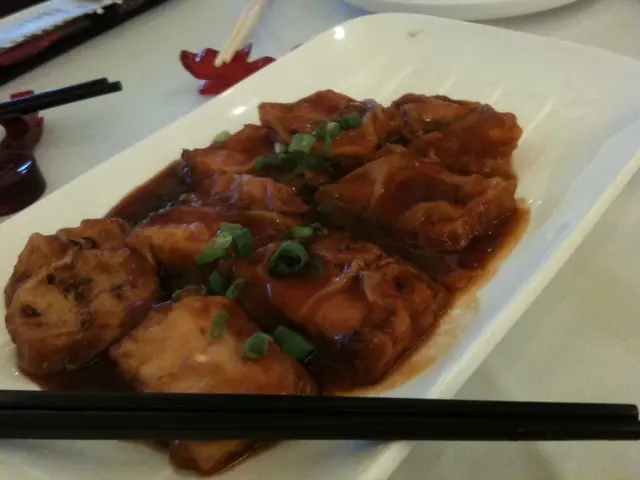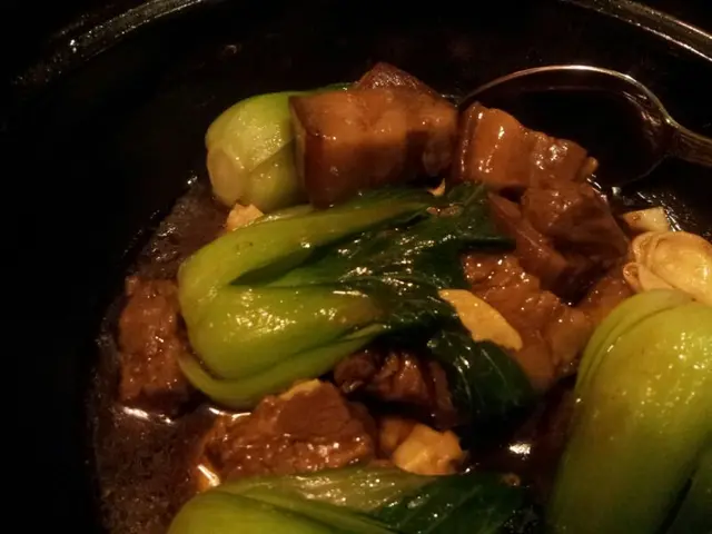 最後亦點了兩隻蟹粉小籠包 (最少點兩隻), 因為媽媽從來無食過. 小籠包皮很薄, 餡料亦相當美味, 很有蟹的鮮味. 很久以前我曾在 "霸王山莊" 都食過, 但不好吃. 中國芳做得好好多 !除了蟹粉小籠包是 $25 一隻外, 其餘三道小菜都同樣是 $80 一碟, 不算貴. 但當然加了茶芥加一後都要平均 $200 一位, 不算便宜, 不過在味道不錯的情況下, 也是可以接受的.…查看更多