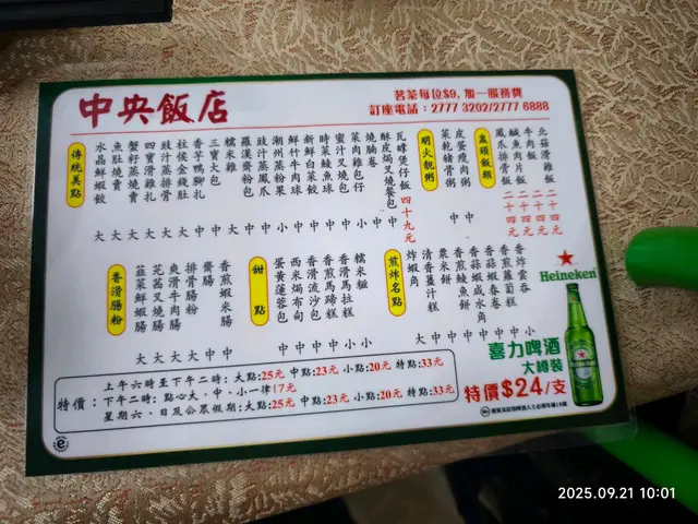 中央飯店 (深水埗) 網址: https://s.openrice.com/QrbS02YS000 地址: 香港深水埗大埔道140號東廬大廈地舖 電話: +852 27776888
