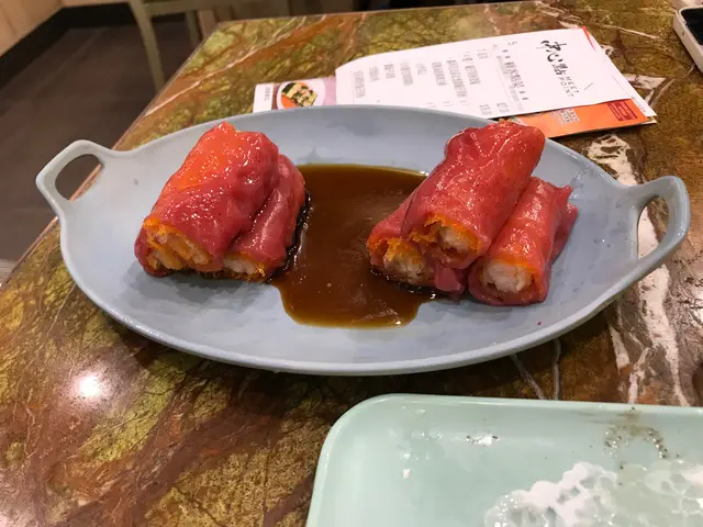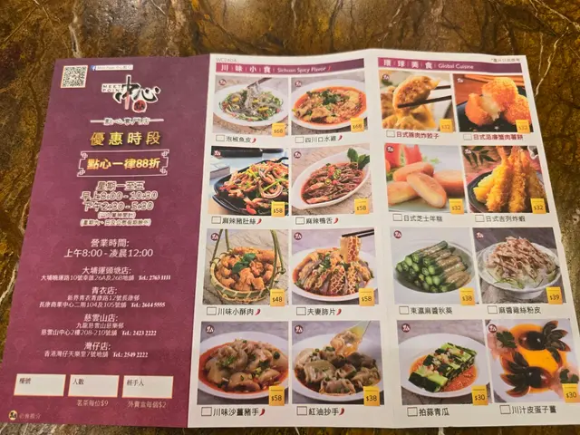 最近我去咗一間點心店,呢間店位於天樂里地舖,交通方便。店員安排2樓座位,但樓底太低,有少少擠迫。其間有日本遊客幫襯,員工可以用日文回應,相當親切。.首先講下食物,茶$36.00一壺,好似唔係計人頭,4人除開一人$9。泡椒魚皮,魚皮好脆,泡椒嘅辣味適中,食落好開胃。紅油抄手,抄手皮薄餡靚,紅油嘅辣味恰到好處。日式芝士年糕,普通。牛肉球正常。陳村粉豉蒜蒸排骨,排骨入味。潮州蒸粉果,餡料豐富。滋補藥膳鳳爪,藥膳味濃。小籠包普通。鮮竹卷普通。翡翠鮮蝦腸粉,好滑腸粉皮薄,蝦爽口。雪山叉燒餐包普通。.整體嚟講,除左2樓樓底太低,有少少擠迫。同埋餐具有少少油之外,都算抵食! .茗茶$36.00泡椒魚皮$68.00紅油抄手$38.00日式芝士年糕$32.00手剁牛肉球$28.00陳村粉豉蒜蒸排骨$30.00潮州蒸粉果$26.00滋補藥膳鳳爪$38.00龍蝦湯小籠包$39.00龍蝦湯鮮竹卷$28.00翡翠鮮蝦腸粉$38.00雪山叉燒餐包$32.00…查看更多