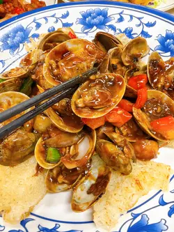 小炒的街坊盛宴🫶🏻 位於灣仔駱克道市政大廈熟食中心2樓,從港鐵灣仔站步行8分鐘即達,店內是熟悉的街坊熟食店氛圍,燈光溫暖,桌椅整潔,滿是人間煙火氣🎊必試火焰胡椒蝦🔥上桌時帶著熱氣與胡椒香,蝦殼酥脆易剝,肉質彈牙鮮甜,胡椒的辛香滲進肉裡,每一口都夠惹味,238元的價格對得起新鮮度。豉椒炒大蜆子皇蜆肉飽滿無沙,豉椒香濃鮮爽,分量十足。豉椒炒蜆(配煎米粉底)同樣出色,蜆肉鮮甜,米粉吸收了海鮮的鮮味,鹹香適中。勁揪咕嚕肉外皮酥脆不油膩,肉塊扎實多汁,酸甜醬汁剛好,98元一份很實在👍🏻黃金鮮魷外脆內嫩,鹹香帶點微甜,口感彈牙;啫啫通菜煲鍋氣十足,通菜鮮嫩,蒜香濃郁,78元一份解膩剛好。性價比超高,服務員動作快,上菜速度快,完全不用等👍🏻…查看更多