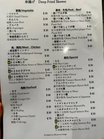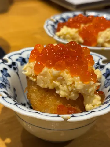 Delicious 串揚 🍢🍡🍢! I have been wanted to try this restaurant! Best is the liver sauce with abalone and the 白子is so creamy! Scallop with salmon roe great for photo, eel and squid a bit dry, prawn is fried to perfection! Wagyu beef is tender. Wash down nicely with a bottle of sake!🍶之前已經好耐標籤咗想上嚟。終於一個禮拜前訂位品嚐。同朋友9:30左右嚟到。日本人主理,服務周到,坐吧枱一路食一路有傾有講。一開始便開始點了七至八樣串揚。最好食是鮑魚配肝醬,白子好Creamy,帶子配魚子三文魚子最啱打卡,銀杏白果外脆內嫩,雞翼皮脆有少少蜜糖味道,還有叫了鵪鶉蛋、白鱔同魷魚,和牛非常嫩滑。最後加點炸蝦,脆漿及火候啱啱好,蝦頭見到乍得脆卜卜,但朋友食咗唔知道怎樣,配合一支清酒完美配合。…查看更多