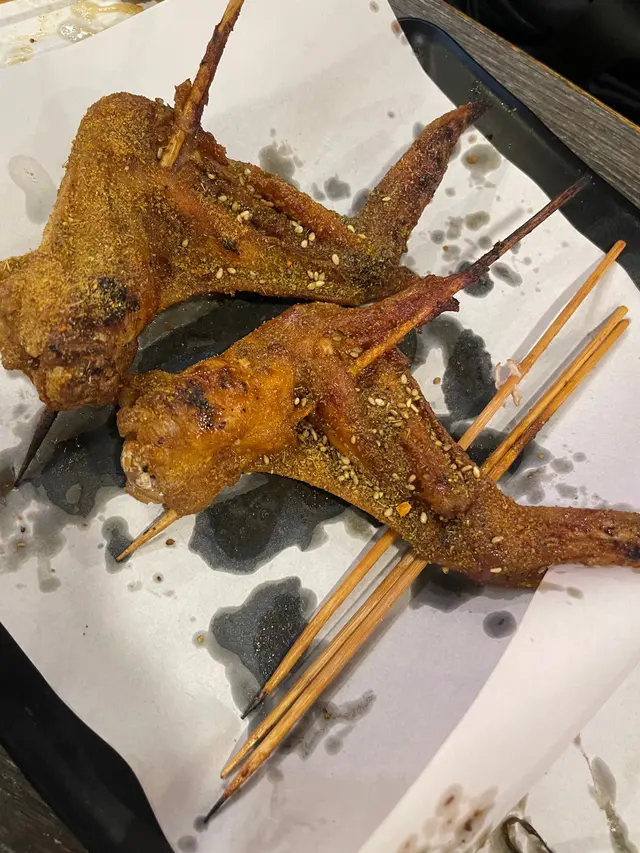 。燒免治雞肉棒, 免治雞肉棒燒得外脆內嫩,完全唔會乾柴。最驚喜系入面混咗啲雞軟骨,層次感爆棚:)。雞中翼,雞中翼燒得外皮脆得嚟帶啲甜味,咬落去肉質嫩滑,完全唔幹,調味簡單但夠曬經典