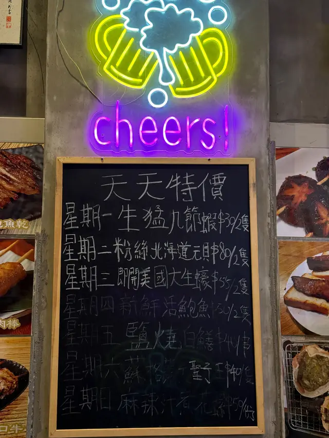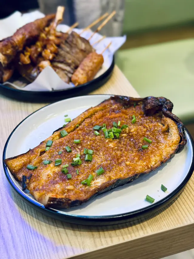 今晚係銅鑼灣睇完戲,見夜附近見到有串燒店,好岩我地晚上食少少野,不過實在太好味,最後越叫越多,好飽好滿足。食完覺得要推介一下海鮮類,估唔到晚上都食到好味海鮮,生蠔同扇貝都好好食。即開新鮮蒜蓉大生蠔 $35/隻生蠔夠哂大隻,蠔肉肥美脹卜卜,邊位爽口好咬,燒得香口又帶有鮮甜蠔汁,加左蒜蓉好惹味。香濃芝士扇貝帶子 $75/2隻熱辣辣勁香芝士味,扇貝彈牙嫩滑,旁邊芝士咸香,配埋個醬汁甜甜地好夾扇貝,超正。紐西蘭羊架 $45羊架厚切唔會好肥,羊肉有咬口連住邊位少少脂肪,好香好正,而且唔會羶,加上孜然粉調味剛好。蒜蓉金針菇 $45賣相平平但入口好蒜香味濃,金針菇吸哂醬汁同蒜味,而且份量都幾多。芝士原條茄子 $45茄子好大碟,因為用上原條茄子,好多肉好正,燒到茄子軟腍,加上大量拉絲芝士,咸香芝士味重,每啖都係芝士同茄子。薄切牛舌 $25,唔薄仲感覺幾厚身,燒得乾身,邊位爽口中間厚肉位置軟腍,調味粉都好香。肥牛金菇卷 $28,又係好正,滿滿調味粉,傳來陣陣香味,肥牛油香加爽口金菇,配啤酒一流。免治雞肉棒 $20,我地叫左每人一串,係雞肉碎同加左d軟骨,增加咬口,味道同口感都好味。墨丸 $22,大大粒好彈牙,再燒得香口d 更正。川北炒粉絲 $68好夠鑊氣好香呀,超大盒,粉絲吸哂醬油調味,咸度剛好,炒得乾身唔油,有腸仔、胵蛋、雜菜......幾多配料,食完好飽肚。…查看更多