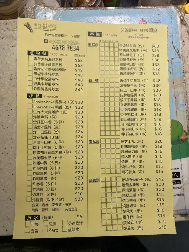 串爸爸 (觀塘) 網址: https://s.openrice.com/QrbS0yTs5W0 地址: 香港觀塘秀茂坪寶琳路2號寶達商場地下M.C. BOX 寶達市場25號舖 電話: +852 46787834