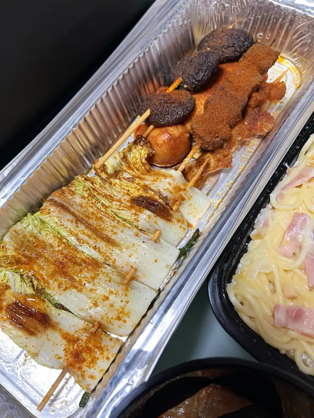 惹味串燒 Ducktak328等級42022-11-2660 浏览 关注 我屋企樓下街市就係新式嗰啲街市.會有好多食店開好夜.11點後就超多人嚟買宵夜.但通常都係食麵.車仔麵.魚蛋燒賣.最近見到開咗間新嘅串燒店.而家宵夜都可以係樓下食串燒.緊係要試下😋⭕️海鹽燒牛舌⭕️燒王子雞腎⭕️川味雞脾肉⭕️川味牛肉卷⭕️川味羊肉卷⭕️燒四季豆⭕️燒娃娃菜⭕️白汁黑松露意粉⭕️瑞士汁雞翼串燒我全部揀左小辣.牛舌大件多汁好嫩滑.雞腎好爽口.雞脾肉牛肉羊肉都唔乾.幾好.四季豆同埋娃娃菜燒得好惹味.好香.個意粉熱辣辣醬汁都好濃郁.意粉跟埋汽水瑞士雞翼好入味正😝整體:係樓下就食到串燒.唔錯.全部即叫即整.可以即刻係旁邊食/囉返屋企慢慢食都得.我就揀左囉返屋企食.就算返到去都熱辣辣.燒得夠惹味幾好🙌🏻…查看更多+ 8以上食记乃用户个人意见 , 并不代表OpenRice之观点。赞好分享惹味串燒 串爸爸 https://s.openrice.com/QrbT0YgH600检举 张贴 评分4味道4环境4服务4卫生4抵食用餐途径堂食