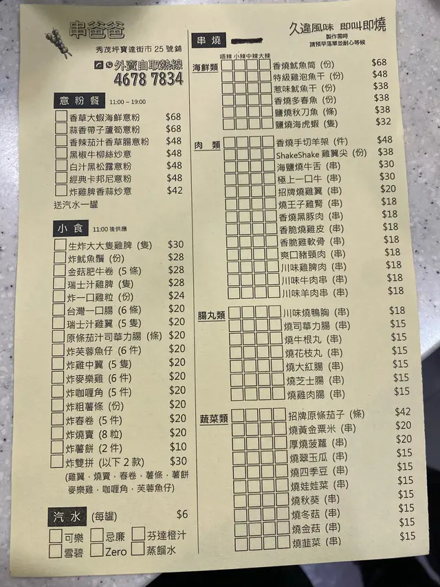 抵食地道串燒小店!入味,香脆! mandy.or等級42022-11-2078 浏览 关注 唔講唔知,原來秀茂坪寶達街市係有條美食街!環境乾淨、企理,街坊老友記都行得舒服,完全有別於一般街市比我哋嘅感覺🤘🏻!各間食店價錢都好抵食,今次吸引到我係一間叫串爸爸🍢嘅小食店。..見到佢嘅小食種類真係好多,串燒、小食、炸物,仲有意粉喎!佢哋都好貼心咁有張點心紙比大家畫返想要嗌嘅嘢食👍🏻👍🏻。.因為係買返屋企加餸,所以嗌咗唔少炸嘢小食。老闆好好人,用咗保溫袋幫我裝晒啲嘢食(好認真,好揼本呀🤘🏻!),而且佢哋啲炸物都會用包有錫紙嘅紙袋或者用盒裝,咁就可以儘量保持食物溫度同味道喇👍🏻!.拎到返屋企打開都仲係熱辣辣,我媽咪都好快即刻拎碟裝起佢!倒咗個魷魚鬚出嚟先發現原來份量係好多!!分享吓啲嘢食先👇👇!招牌原條茄子。果然係招牌,我同屋企人最鍾意都係呢個!蒜蓉好足料,好入味,茄子又夠晒淋,撈飯食好濃郁好正😋😋!.炸一口雞粒 。呢個雞粒炸粉好薄有驚喜!好香口,就算凍咗啲都覺得幾好食👌🏻👌🏻!..炸魷魚鬚,我媽咪話愈咬愈好食!果然魷魚鬚都係唔會令人失望,配埋杯可樂,咬住夜晚睇電視就啱晒喇👍🏻!.另外今次仲買咗燒花枝丸、極上一口牛、招牌燒雞翼、燒玉子雞腎同香脆雞軟骨,所有野加埋埋單都唔使200蚊,就可以過足口癮食晒唔同嘅香口小食✌🏻✌🏻!順帶一提,老闆好有禮貌好好人呀😄😄!見到每次有人過嚟落單,佢都會提醒要等幾耐,比客人考慮返。我都留意到串爸爸係有得嗌網上外賣平台,住秀茂坪或者觀塘區嘅街坊,可以考慮吓!…查看更多+ 3以上食记乃用户个人意见 , 并不代表OpenRice之观点。赞好分享抵食地道串燒小店!入味,香脆! 串爸爸 https://s.openrice.com/QrbT0TeL600检举 张贴 评分5味道5环境5服务5卫生5抵食推介美食招牌原條茄子$42炸一口雞粒$24用餐途径外賣自取
