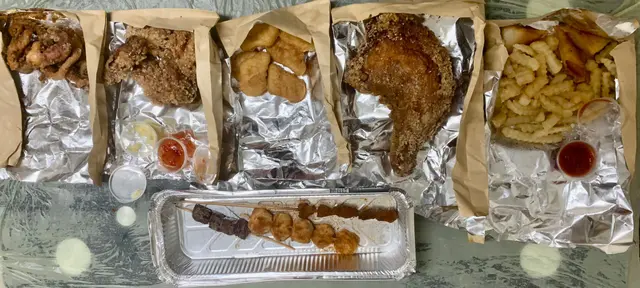 即炸熱食串燒 Foodie Lady等級42022-11-2448 浏览 关注 近排世界盃開鑼,約埋fd子買外賣邊食邊睇。所有嘢都係即叫即整,趁熱食好正。生炸大大隻雞脾 - 好大隻啖啖肉,雞脾肉幾滑唔嚡口。炸魷魚鬚 - 炸粉唔算厚,肉質爽口彈牙。炸雞中翼 - 外層好香脆,中間雞肉好juicy。炸麥樂雞 - 味道同老麥差唔多,口感因為即炸就結實好多。炸雙拼 - 份量好多好抵食,咖哩角層皮好脆口,薯條就不過不失。極上一口牛 - 肉質偏韌有嚼口。川味牛肉串 - 牛肉較乾身,灑上大量調味粉幾惹味。炸花枝丸 - 咬落好爽口好好味!…查看更多+ 4以上食记乃用户个人意见 , 并不代表OpenRice之观点。赞好分享即炸熱食串燒 串爸爸 https://s.openrice.com/QrbT0SvL600检举 张贴 评分5味道4环境4服务4卫生5抵食用餐途径外賣自取