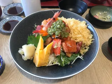 係黃埔返左咁耐工,都未去食過,老公過左黎搵我食飯,咁試下依間啦。睇完個餐牌,價錢係依區黎講都唔算平,隔離幾條街真係街坊價,但係一見到隔離檯叫嘅食物,就知道依個價錢係值得俾嘅。我老公叩左依個壽司SET,又有湯,沙律,烏冬,飯團,壽司,好多。佢一個人食都話飽。當然食物質素都好好因為我事前唔知道大家嘅分量,所以我叫左雜錦魚生飯,出到黎原來仲大碗,又好多料,而且都幾新鮮,係唯一我唔鐘意咁多天婦羅嘅炸粉係度,好奇怪咁。但係overall係好味嘅,而且我又有湯同沙律,又係飽到上心口。雖然依個lunch set唔平,2個人都要差不多3百幾4百,但係周不時食下都幾好嘅。而且侍應都幾有禮貌,所以會再有下次~…查看更多