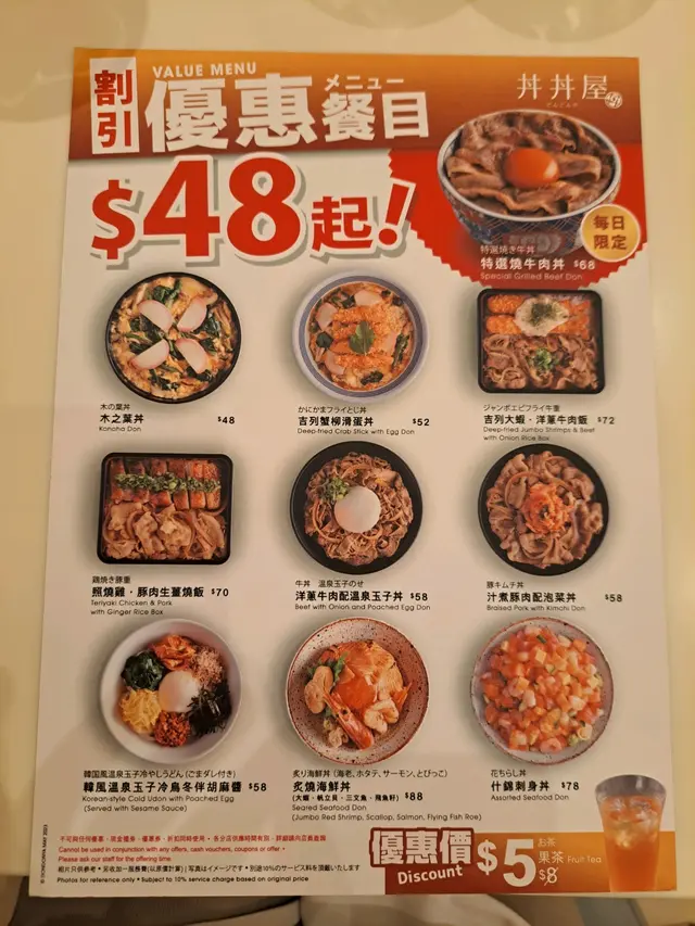 Lunch食下丼丼屋都唔係好過份啫😋1. 炙燒海鮮丼 $88(大蝦,帆立貝,三文魚,飛魚籽)本身我對三文魚沒有特別喜愛,加上炙燒,但仍然保持到口感嫩滑,而且好有三文魚本身嘅油香味,大蝦同帆立貝好鮮甜,飛魚籽都比想像中多!2. 什錦刺身丼 $78 三文魚相對地比較多,吞魚好少,得幾粒!其實夏天好多時都比較鐘意食壽司/刺身丼,壽司醋飯配油膩感嘅刺身,食落特別清爽開胃!而且丼丼屋嘅lunch真係幾抵食,呢個set加$5有杯水果茶算係咁啦!查看更多