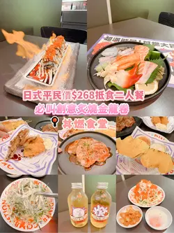 係厚福街無意之中發現呢間日式平民價食堂,主打食丼飯的 「丼燃食堂」,入到去見到有丼燃二人前套餐幾抵食,$268 有齊前菜沙律 + 小食 + 日式串燒 + 酥脆炸物 + 惹味熟食 + 刺身拼盤「可選配壽司飯」+ 丼燃正飲品 ,真係幾豐富,加$58 叫埋驚喜金龍卷。丼燃二人前套餐無論前菜沙律、小食 、日式串燒 、酥脆炸物 + 惹味熟食 ,每款都有幾款選擇,梗有一款啱你心水。🥤丼燃正飲品 - 白桃/桂花冷泡茶兩款冷泡茶都很香茶的味道,又有淡淡的白桃或桂花清香。🥢 刺身拼盤配壽司飯刺身有齊三文魚、三文魚中腩、北寄貝、油甘魚、虎蝦、玻璃蝦、油甘魚同蟹棒,全部都幾鮮味,特別喜歡肥美三文魚中腩同油甘魚。🥢小食 /日式味付螺肉 + 溫泉蛋溫泉蛋整得幾流心,用嚟撈飯幾好味。🥢 前菜沙律 - 蟹籽沙律蟹籽沙律幾大碟,滿滿蟹籽同青瓜絲再加蟹柳絲,撈埋沙律醬幾清新。🥢 金龍卷有驚喜招牌金龍卷,上枱時店員即場用火槍灸燒,真係好有創意,啱晒打卡,金龍卷用咗炸蕃薯同鰻魚配搭幾新鮮,鰻魚燒到好香脆又惹味,入口又幾好食🤤,推薦大家要試吓。🥢 日式串燒 - 焦糖菠蘿 + 明太子翠玉瓜新鮮菠蘿面燒到焦糖香,入口又脆又鮮甜又好味,爽甜多汁明太子翠玉瓜,翠玉瓜面搽了明太子醬都幾邪惡👿。🥢 酥脆炸物 - 吉列蠔 + 天婦羅鰻魚估唔到吉列蠔同天婦羅鰻魚都整得幾好味,炸到外面脆卜卜,咬入去又軟綿綿 。🥢 惹味熟食 - 蔥燒牛舌燒到剛剛好蔥燒牛舌幾惹味。喜歡我的分享?記得like 🩷 + Follow📌我!…查看更多