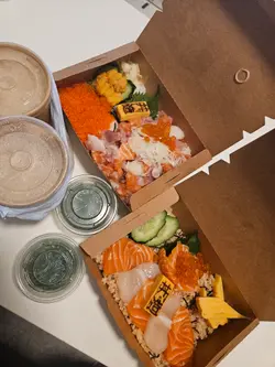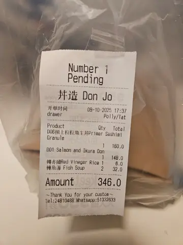 今日去上環辦事,順便去咗禧利街呢間「丼造」食下佢嘅魚生丼。今次我哋就外賣。🍣 極上粒粒魚生丼個賣相幾吸引,真係好似佢個名咁,係將各種魚生切成一粒粒,舖到滿一滿🏔️。有吞拿魚、三文魚之類,口感幾好,一啖一啖食落好方便。八爪魚粒🐙有咬口,蟹子鹹鹹地卜卜脆。海膽都幾甜,雖然份量唔算話好多,但以呢個價錢可以接受。佢嘅醋飯調味剛好,同啲魚生好夾。🐟 三文魚親子丼另一個就叫咗呢個,三文魚都幾厚,幾肥美🎣。帶子都幾鮮甜,三文魚子唔會太鹹,撈飯食好正 💥。🥗 【中華沙律】前菜有中華沙律?口感爽爽脆脆,帶少少酸甜,幾醒胃 🥢,係唔錯嘅開胃小食。🥣 魚湯我哋加錢要咗魚湯。個湯係奶白色🥛,飲得出係真係用魚熬嘅,冇味精味,幾暖胃 ❤️。總體來講,係一間幾有誠意嘅小店,食材新鮮,份量夠,喺上環區來講性價比唔錯 👍。…查看更多