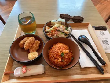 下午大約兩點多前來,現場並不多食客,但卡位還是佔滿的。我們選這裏的原因是因為相對寧靜,我們坐了一小時左右。分別叫了一個甜筒雪糕及泡菜炒飯。上菜時間也屬正常,就坐時店小二都會提示不收現金,實在有些令人費解。下單方面是使用二維碼,介面也是清晰容易操作,菜品的圖片也是齊備,所以這方便也算是符合標準。如果拿實體菜單,整體設計也是美觀及實用的。就下午茶而言,份量算是不錯的,也適配我的午餐食量。味道是相當開胃,泡菜切得相對細小。如果你是附近的街坊,順路不妨到來。