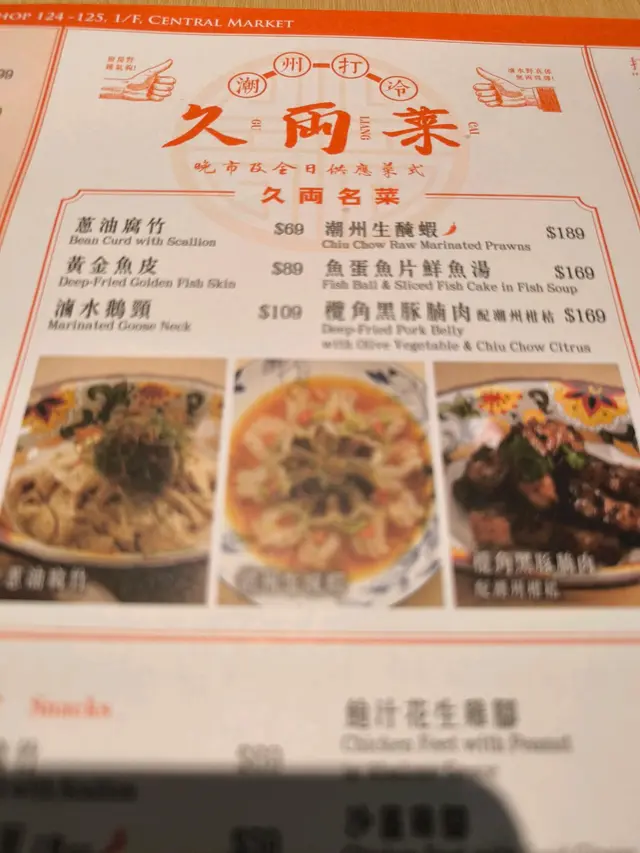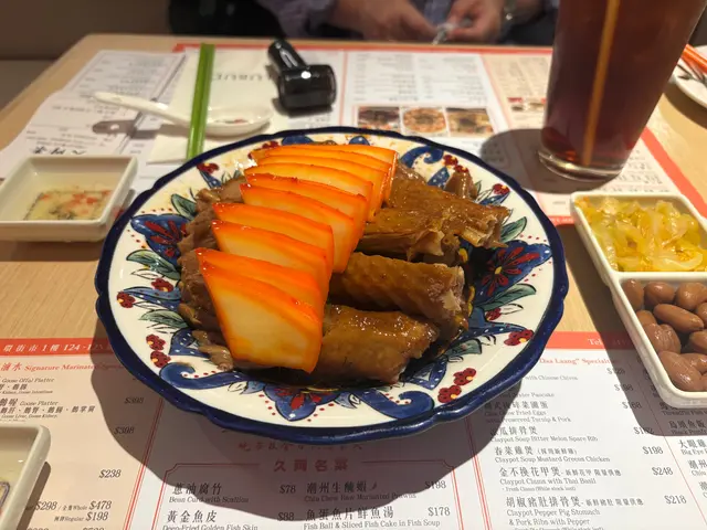 都一段時間冇去中央街市裏便行,今晚順便食埋夜晚飯,之前都有朋友介紹過話有間潮州菜都唔錯,所以就衝着佢而來….之前都有睇過啲食評好多過唔好嘅,咁我試過就知啦⋯⋯佢喺中央街市一樓,半戶外形式,初初搵唔到點樣入,佢個門口太窄😆😆😆入到去佢會叫你飲乜茶啦,當然要收錢啦⋯⋯咁我哋直程唔飲,飲凍飲算。睇過餐牌啲嘢都偏貴,中環區我諗係咁上下啦,叫咗個3拼嘅潮州拼盤:揀鵝片墨魚同埋鵝掌翼,另外叫咗個炸鯪魚球同埋一個鹹菜豬肚排骨煲,兩杯凍檸茶… 其實都算貴埋單$830左右…不過啲食物質素唔差,三拼都唔錯,唔伏都幾好味,亦都算大碟;個炸鯪魚球炸得幾好但係佢點個汁醬就比較辣…. Anyway唔錯, 另外個鹹菜排骨煲就正正常常啦!如果佢價錢平返20%嘅,可能我會再試的…..…查看更多