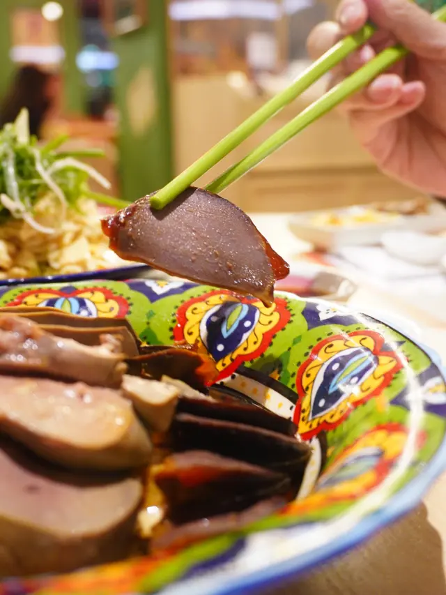 蠔餅,腩肉,滷水鵝片,四季豆,雞肉
