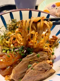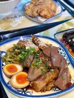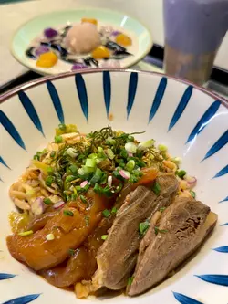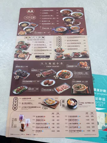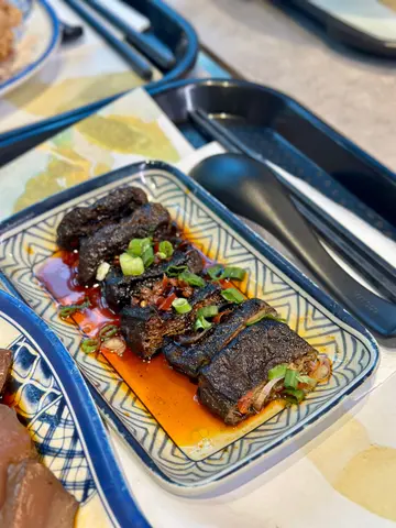 餐廳:久久地點:中環街市菜式:台灣菜餐牌:下午茶餐牌有手工湯麵,家傳滷肉飯,手工拌麵,地道小食,甜點,飲品,價錢相宜。久久紅燒半筋半肉手工麵 $63久久紅燒半筋半肉手工麵大大碗,面頭係牛肉兩大件同牛筋兩大件。牛腱心帶筋,整得好淋好有牛味!牛筋入口即化,滿嘴骨膠原,而且好入味!伴有好多鹹菜同蔥花。個湯好清,送麵好食唔會肥膩。麵係白色扁身麵條,都有口感,份量唔少,唔錯。古法小食拼盤 $68古法小食拼盤有牛腱心兩大件,牛筋兩大件,薄身鴨血4片,鷄翼兩隻,糖心蛋一開二同鹹菜,面頭撒上香茜。呢個價錢分量好多呀!麻辣鴨血 $18麻辣鴨血一客七件,非常抵食。鴨血爽脆,味道真心非常辣,面頭加有好多辣椒同蔥花。滷肉A菜 $28滷肉A菜係油墨菜上面加好多滷肉。油墨菜份量足,滷肉份量多,皮同肥膏有彈性,健康又好味。今餐食物都幾好,上菜快捷,價錢合理,地點方便。下午茶特別抵食。…Read More