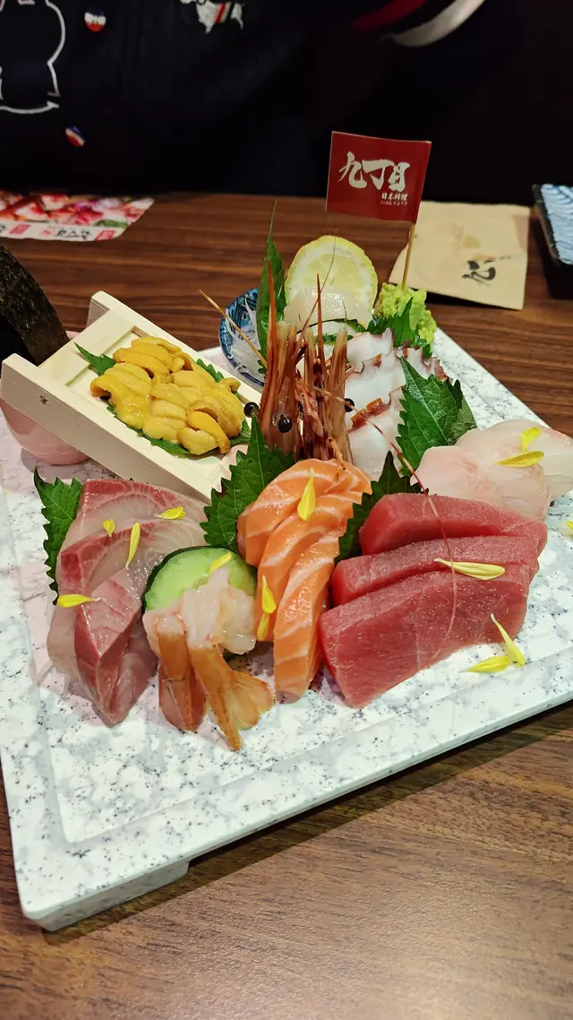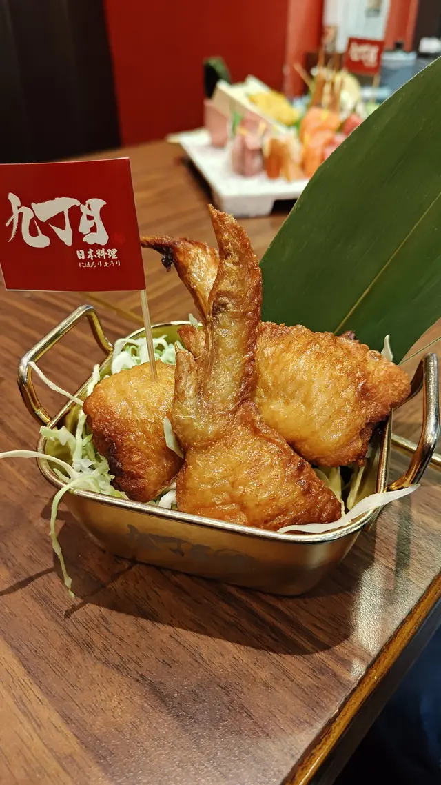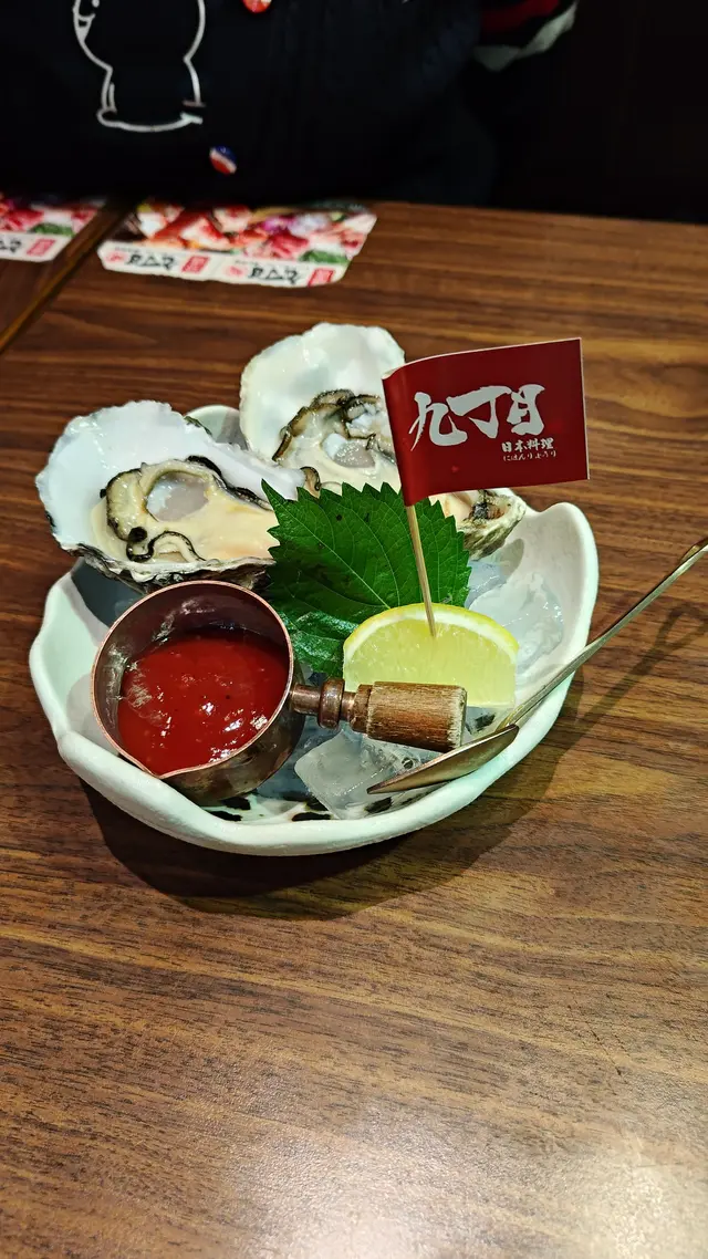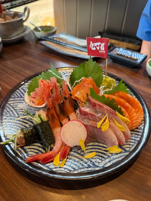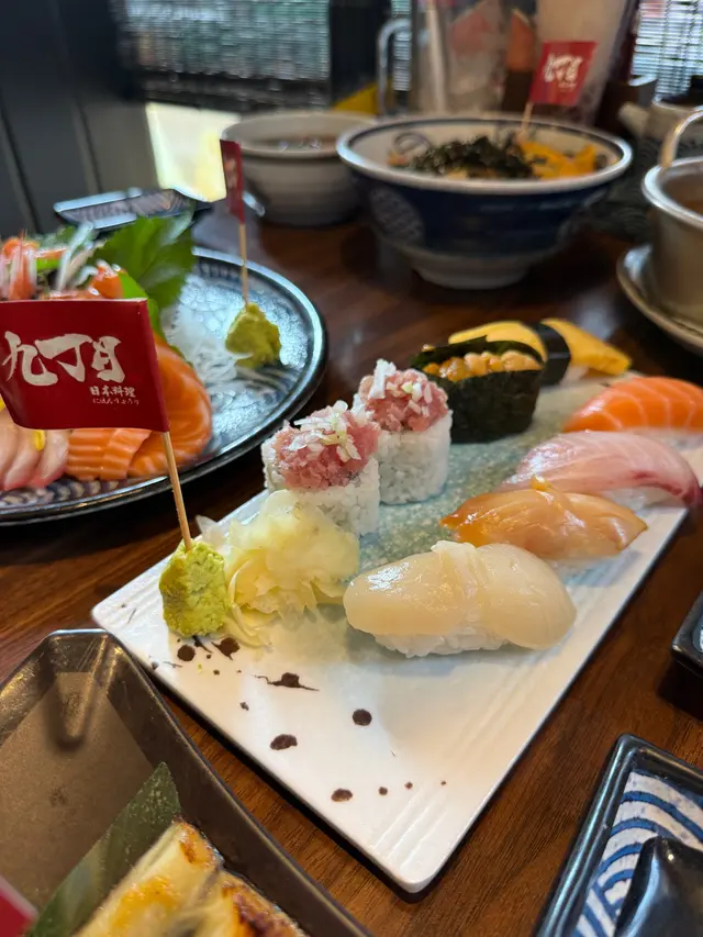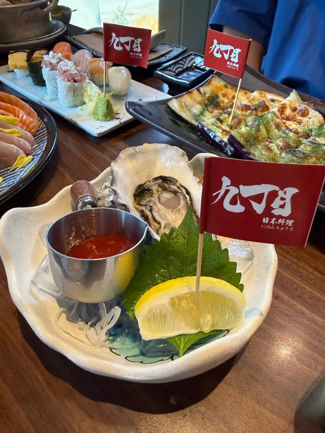 九丁目日本料理🐟 八品刺身($468)這盤八款刺身拼盤係亮點,包括三文魚、吞拿魚、甜蝦等多款海鮮。魚片厚身,新鮮,擺盤賞心悅目,特別推薦三文魚油潤,吞拿魚無筋軟綿甘甜,八爪魚柔軟易咬唔韌仲送海膽添!鮮甜唔腥臭,小驚喜🧡🍲 三文魚頭石狩鍋($125)天氣開始凍就想食鍋物!熱辣辣食到成個人都暖哂!材料有四大件經過煎炸嘅三文魚頭件,豆腐,菇菇,野菜,葛絲,非常日式魚頭肉嫩多汁,膠原豐富,湯底鮮甜中帶點油脂嘅暖意,冬日暖胃首選🦪 法國生蠔($58)肉質飽滿,入口滑嫩,口感爽脆帶著海水的鹹鮮和淡淡的果香,有回甘甜味🍗 明太子雞翼($55)以雞翼裹上日式明太子醬製,外皮酥脆,內裡肉汁豐盈仲有個雞翼尖lun下,啱哂各位骨精🦴明太子嘅鹹香同微辣完美滲入雞肉,勁好送酒,整返啖冰凍生啤,完美絕配!🐷 黑毛豚肉串($52)外焦內嫩,肥瘦適中,肉質彈牙帶黑毛豬嘅天然甜味,焦脆鹹香出色🍤 吉列炸蝦($48)大蝦裹上面包屑炸至金黃,外皮酥脆,蝦肉彈牙油溫控制得宜,無油膩感🍺 1664 啤酒($38)食下酒小食又點少得啤啤佢!店家貼心地分成唔同ML,等各位朋友仔可以依照自己酒量去飲泡沫細膩,有淡淡果香,清爽唔苦澀,完美解油膩,同埋夠凍!正!座位寬闊好坐,店員態度友善,有收加一服務費餐廳設有VIP包廂,寬敞舒適,私隱度高,方便一大班人食住好西開PARTY!室外仲有寵物友善區域,更加驚喜嘅係竟然有「寵物便當」!🤩咁帶住小毛孩行街街都唔擔心佢會餓親啦!菜單睇落健康美味,一定食到小毛孩舐舐脷🐶🐱各位爹地媽咪真係要帶小朋友去試下!…查看更多