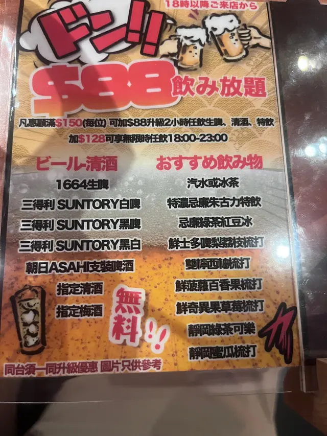 已到訪多次元朗隱世燒肉~居酒屋~喺門口見到轉左餐牌👀多咗好多款👍🏻🥨佐酒小食炸物【$28起】🥗特大蟹籽沙律【$78 】🍢多款串燒,即叫即燒🔥【$28起】推介厚切牛舌心一串【$58】北海道黄金帶子燒【$38/1】有帶子,仲有蝦肉超抵👍🏻八品刺身【$468】刺身鮮甜,絕對都值得推介👍🏻😋極推介日本直送A4/A5和牛,價錢比起之前優惠咗好多,大大塊A4牛肉眼【$298】自己燒,燒到半生熟,入口即溶😋👍大阪城【$208】內裏分開三層:有豬、牛、雞三款肉類特選牛肉盛【$298】有4款級數和牛,不同級數和牛,各有特色除咗燒肉.串燒.刺身.小食外如果想叫鍋物暖吓肚都冇問題🫕鍋物三款可以提供* 味噌牡蠣鍋【$108】* 泡菜豚肉鍋【$98】* 牛肉壽喜燒【$108】* 追加手打烏冬 【+$20】可以加【$128】任飲(限時優惠一送一)飲品種類:🍺1664🍺三得利生啤🍶清酒🍸梅酒多款特色飲品:🥤特濃忌廉朱古力🍹雙檸西柚梳打🍹菠蘿百香果梳打叫一杯都已經值票價#foodie_forfood#hkfoodie#元朗美食#元朗必食#推介#日本料理#隱世燒肉店#日本#任飲…查看更多
