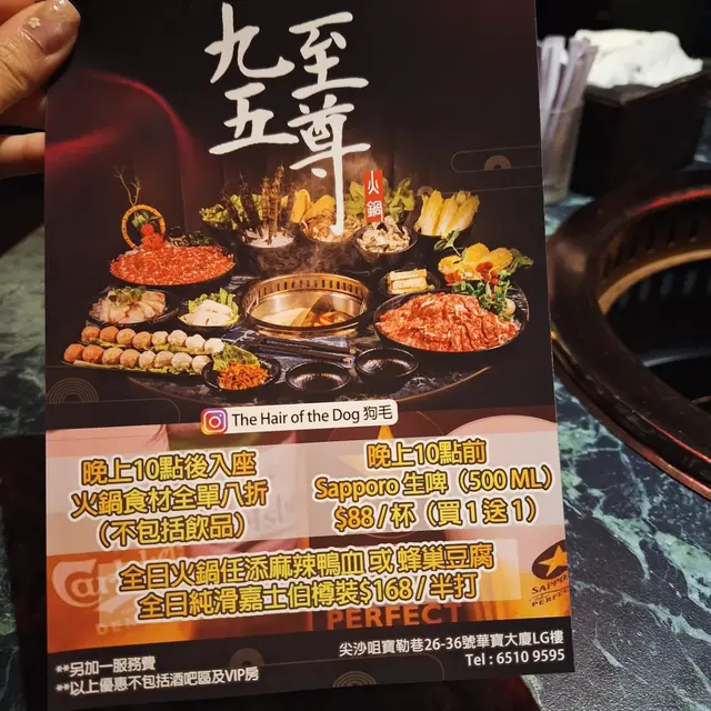 最近天氣開始涼,成日都諗住邊度可以同朋友開鍋取暖~上次試咗尖沙咀呢間 九五至尊火鍋狗毛,真係吾錯!😋 🐔 花膠螺頭老雞鍋 - 一上枱已經聞到香氣~湯底好濃郁,飲落順喉又有膠質感,啖湯真係飲唔停😌,打邊爐前先飲返兩碗都唔過份~ 🍖 蒙古羊肉片 - 呢個係我嘅心水!薄切羊肉片,好快熟,滾幾秒就啱啱好。冇我想像中咁羶,反而好嫩好滑🤤。 🦐 海鮮拼盤 & 手打蝦滑 - 海鮮都夠新鮮,帶子、青口、蝦都幾實淨。蝦滑真係要讚😋~ 🦐海鮮拼盤- 海鮮迷一定唔可以錯過呢份~蝦、帶子、鮑魚、花甲全部都新鮮得嚟有光澤,一上枱就知道啱啱起貨。🍯 凍龍眼蜜 - 食完火鍋要清清味先夠完美~凍龍眼蜜甜度啱啱好,飲完成個人涼返晒✨。 💥 優惠都唔少 💥 🕘10點前嚟杯SAPPORO 啤酒🍺放鬆下~ 👉 任食麻辣鴨血 or 蜂巢豆腐 **$88 買1送1!**🌙 10點後入座全單 火鍋食材 8折(飲品唔包)~夜鬼們有福啦😎 📱Follow & Share IG 再送湯底!打卡完仲可以拎免費湯底: - 胡椒豬肚湯鍋 - 冬蔭功湯鍋 - 蕃茄薯仔濃湯鍋 - 麻辣鴨血鍋 想試其他味?仲有多款湯底半價~抵食又有得玩🔥 環境幾舒服,座位闊,成間店氣氛好 chill;職員又好有禮,幫手快手唔拖拉👏。地點喺尖沙咀中心,一出地鐵就到,約朋友、開宵夜局都方便💬。…查看更多