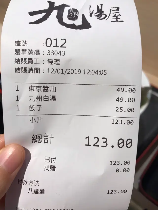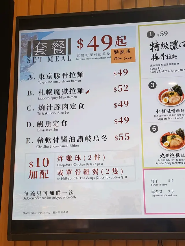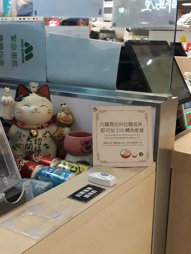 第一次去東港城,行完一田超市有點肚餓,加上唔知道將軍澳有咩好食,只記得門口位置有間平價拉麵店,於是膽粗粗去試下。店舖除了拉麵,仲有烏冬、定食、小食等選擇。我就揀左九州地獄拉麵。佢可以選擇辣度,由於我唔係太食得辣,所以就揀左少辣。坐左一陣好快就出餐了,要自己去拎。拉麵配有筍乾、流心蛋、海帶、紫菜及薄叉燒。味道就普普通通啦,唔算特別好味,咁既價錢都唔差架啦。個少辣湯底都幾香,少少辣都幾惹味,不過吃吃下就有D咸。如果趕時間或諗唔到食咩既時候,呢間拉麵店都係一間唔錯既選擇。…查看更多