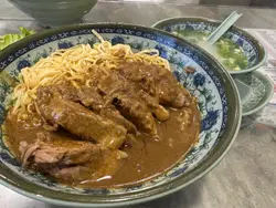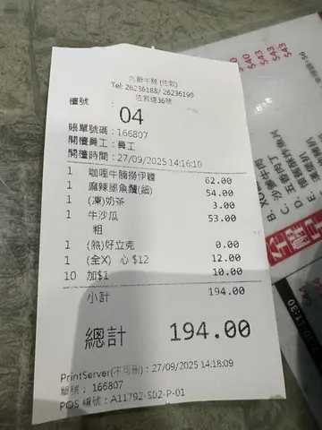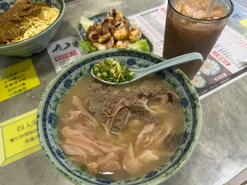 食呢間牛腩粉麵唔多唔少都會諗起中環最出名嗰間記,因為一望餐牌就見到咖喱伊,即係咖喱牛筋撈伊麵,呢度竟然都有。仲有最可笑嘅係,九記牛腩出名細碗,食兩碗先飽,即係過$100一餐,而呢度就係超勁大兜,大到正常人都食唔晒,要知道伊麵係比較飽肚的。接落嚟我哋講吓味道。➡️ 咖喱牛腩撈伊麵 $62其實咖喱味都不錯,你看他大大份,牛腩量亦都非常之多,再講只係$62,性價比好高,我實在冇投訴➡️ 牛沙瓜 $53當日最想食嘅崩沙腩已經賣晒,話晒都係專食牛腩,呢啲特別部位唔係度度都食到,就揀咗佢啦。確實係比一般牛腩唔同,有咬口有牛味。➡️ 麻辣墨魚鬚 $54辣得好惹味啊。再來就是份量的問題,確實不少。九爺牛腩(佐敦)佐敦佐敦道36號地舖…查看更多