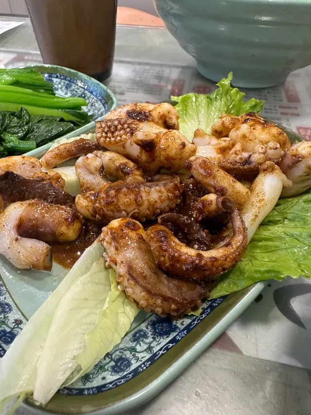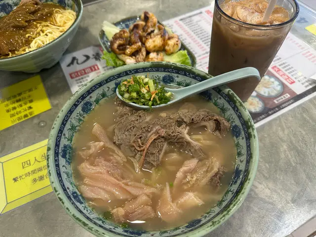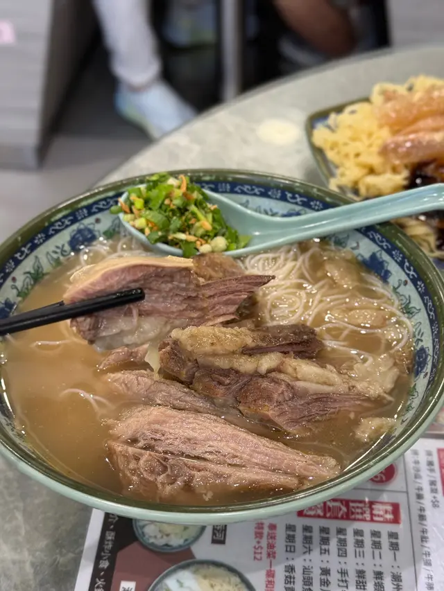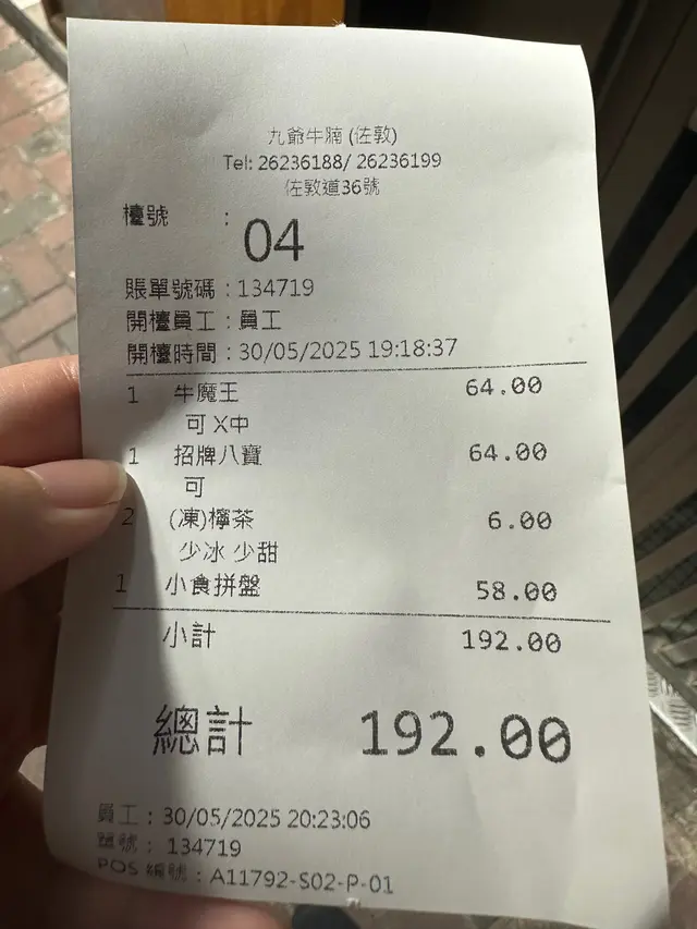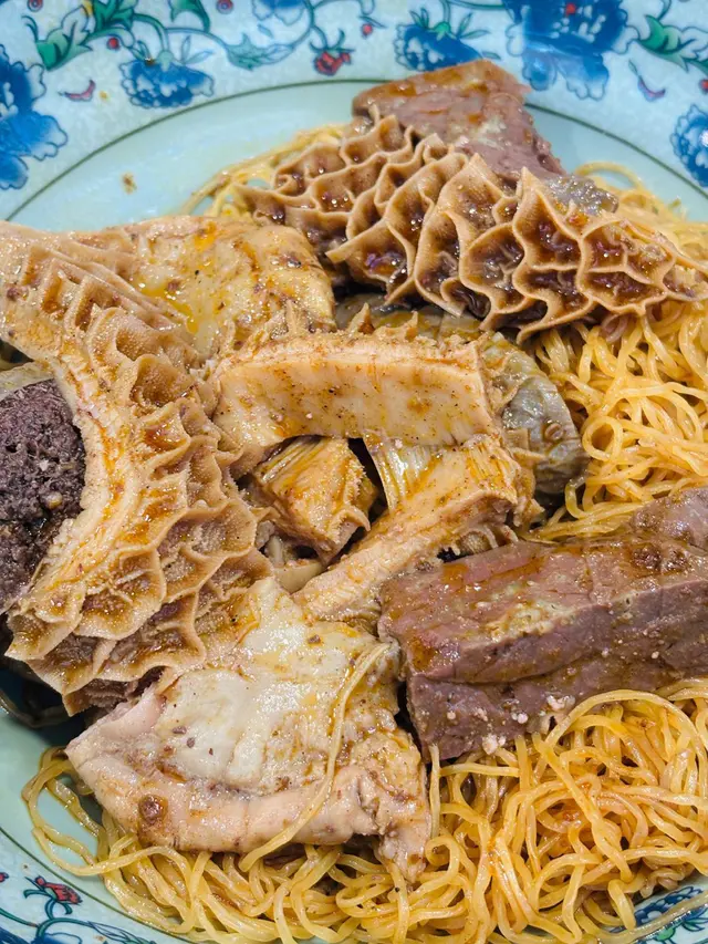 食呢間牛腩粉麵唔多唔少都會諗起中環最出名嗰間記,因為一望餐牌就見到咖喱伊,即係咖喱牛筋撈伊麵,呢度竟然都有。仲有最可笑嘅係,九記牛腩出名細碗,食兩碗先飽,即係過$100一餐,而呢度就係超勁大兜,大到正常人都食唔晒,要知道伊麵係比較飽肚的。接落嚟我哋講吓味道。➡️ 咖喱牛腩撈伊麵 $62其實咖喱味都不錯,你看他大大份,牛腩量亦都非常之多,再講只係$62,性價比好高,我實在冇投訴➡️ 牛沙瓜 $53當日最想食嘅崩沙腩已經賣晒,話晒都係專食牛腩,呢啲特別部位唔係度度都食到,就揀咗佢啦。確實係比一般牛腩唔同,有咬口有牛味。➡️ 麻辣墨魚鬚 $54辣得好惹味啊。再來就是份量的問題,確實不少。九爺牛腩(佐敦)佐敦佐敦道36號地舖…查看更多