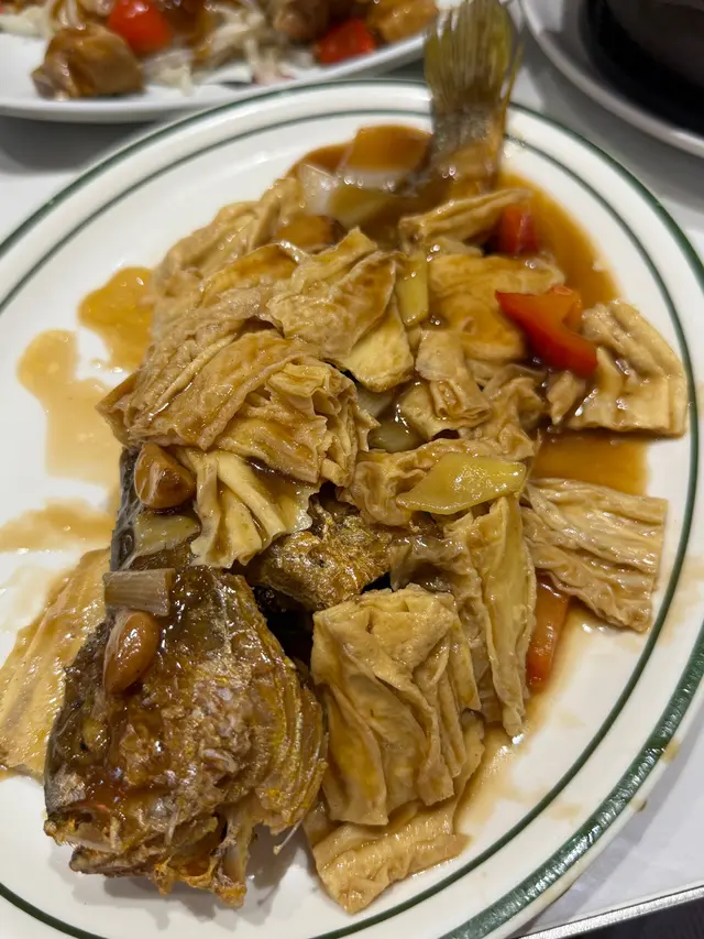 。油菜是蠔油生菜,算不上有甚麼特別,灼得剛好,帶著玻璃生菜的口感。鮮魚、鮮雞菜式我們就選了「清蒸馬友」,因為一向吃魚鮮清蒸最能吃出魚的鮮味,簡單少少薑蔥蒸,確實令到鮮味盡出,馬友的肉質超級嫩滑