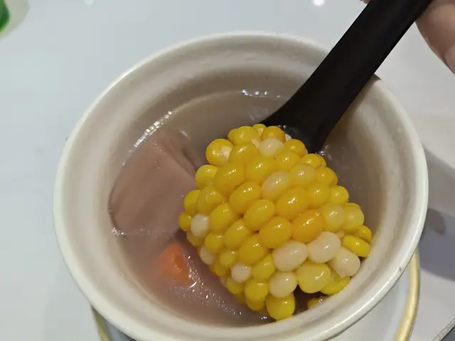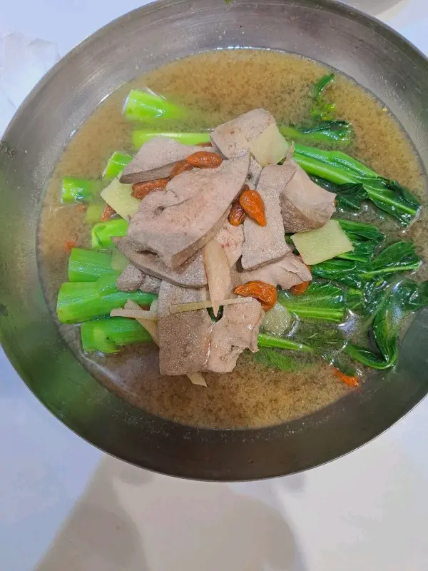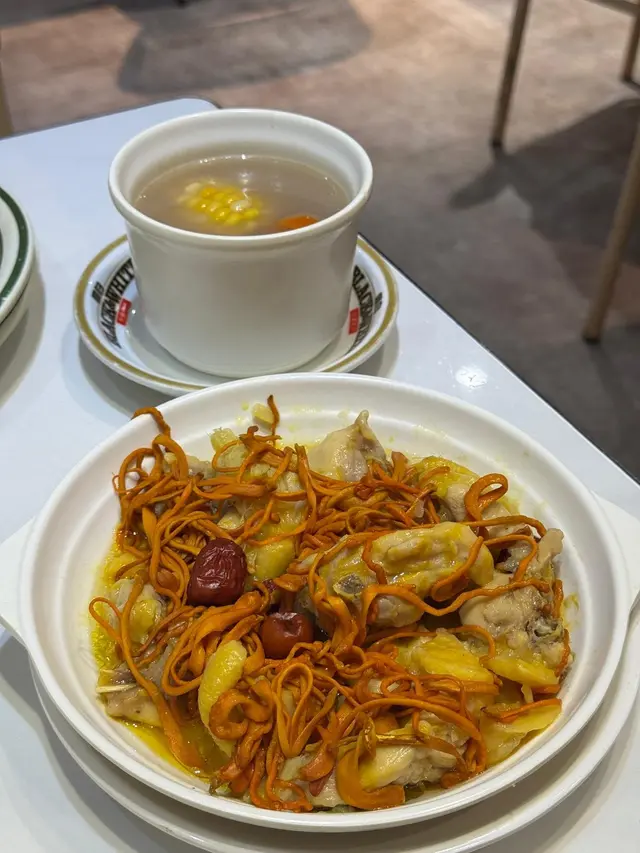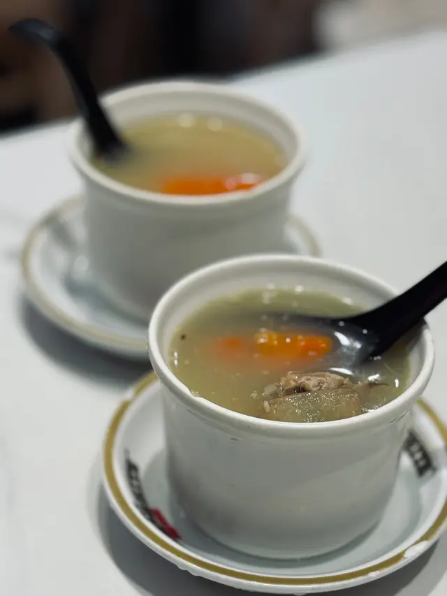 ,非常搞笑。翻一翻餐牌選擇十分之多,但講到最划算非晚市二人套餐莫屬,包例湯、一道鮮魚或鮮雞菜式、一道是日晚餐款式、油菜、是日例湯及熱飲,另加錢轉凍飲或升級特飲。茶餐廳的基本設定,就是將所有餐具、基本調味料都已放在枱旁櫃桶內。先來兩碗「老火例湯」,入口果然夠老火,味道清甜,攪拌一下,看到有很多湯料,製作一點也不馬虎