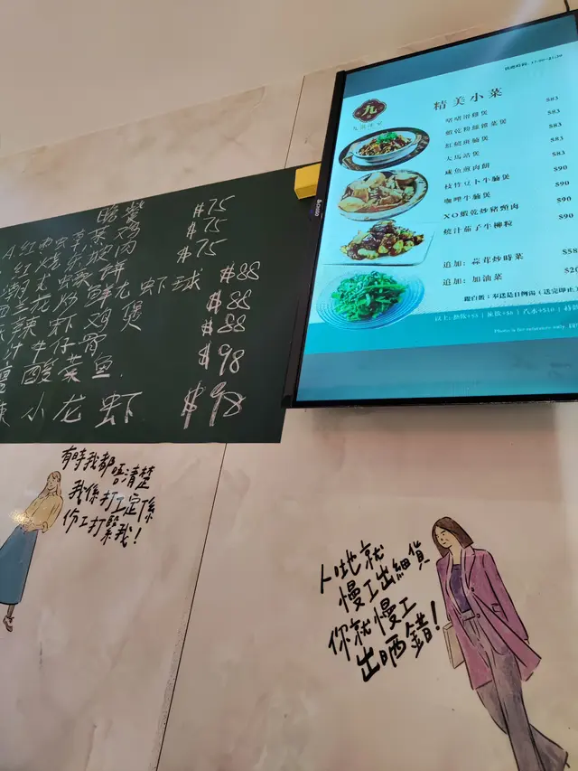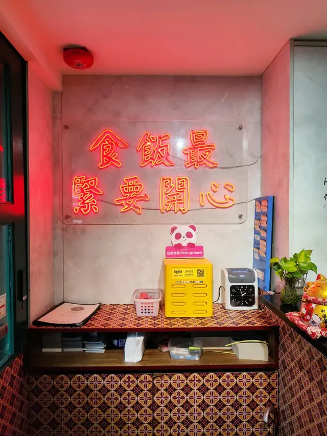 。家家茶餐廳格局都大同小異,但難得這裡座位編排得不算密,牆上除了有不同的菜式推介外,最有趣是貼上好些打工金句