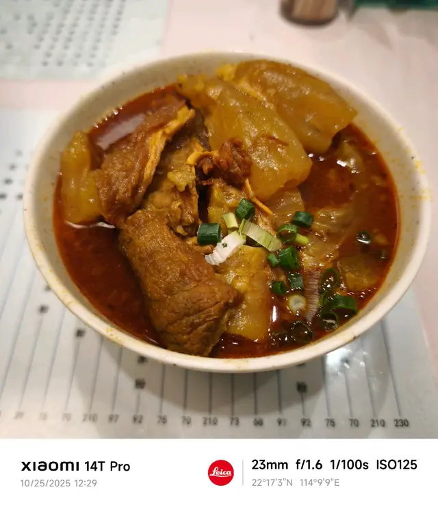咖哩牛腩麵、半肥伊麵。