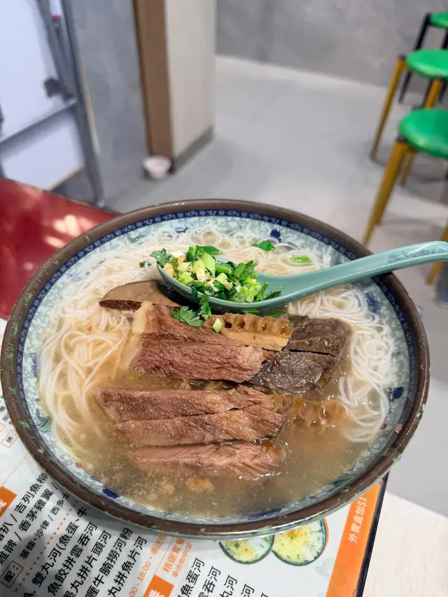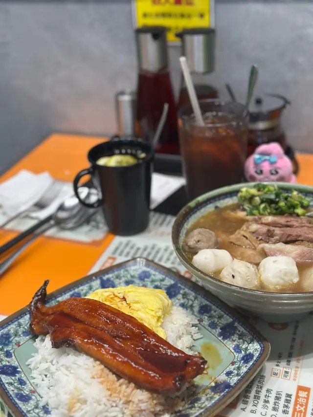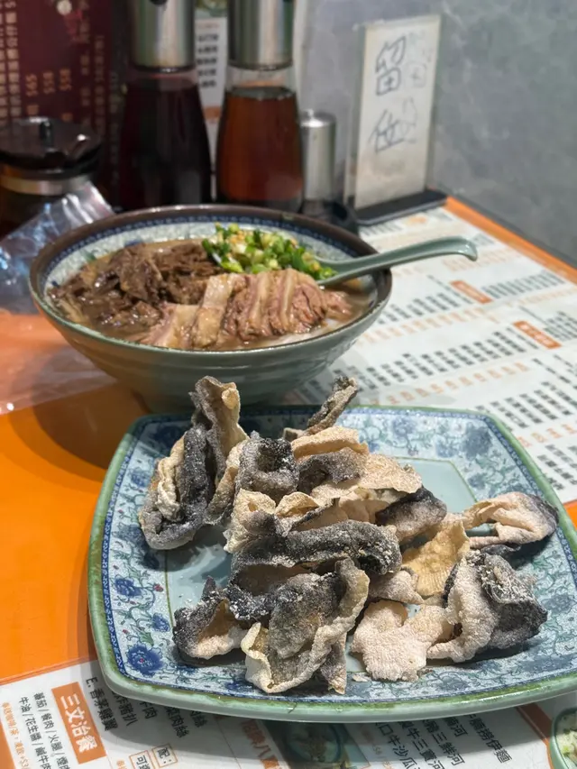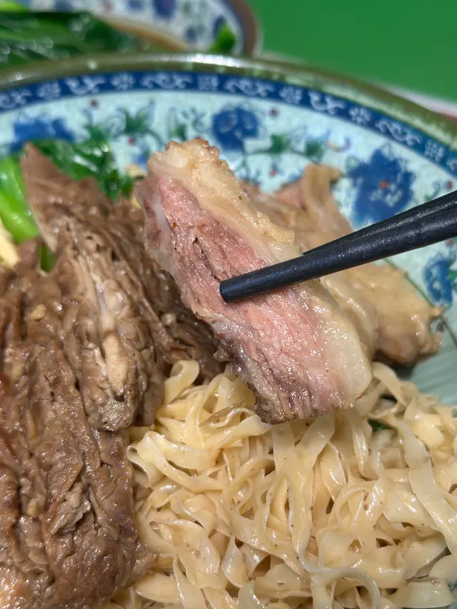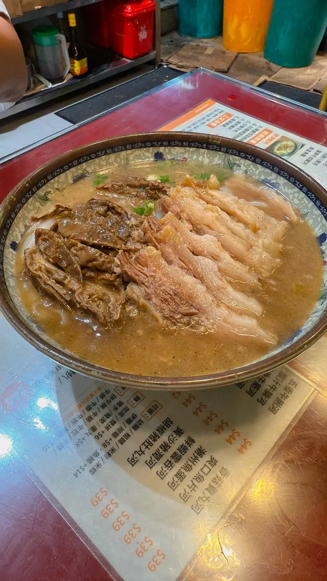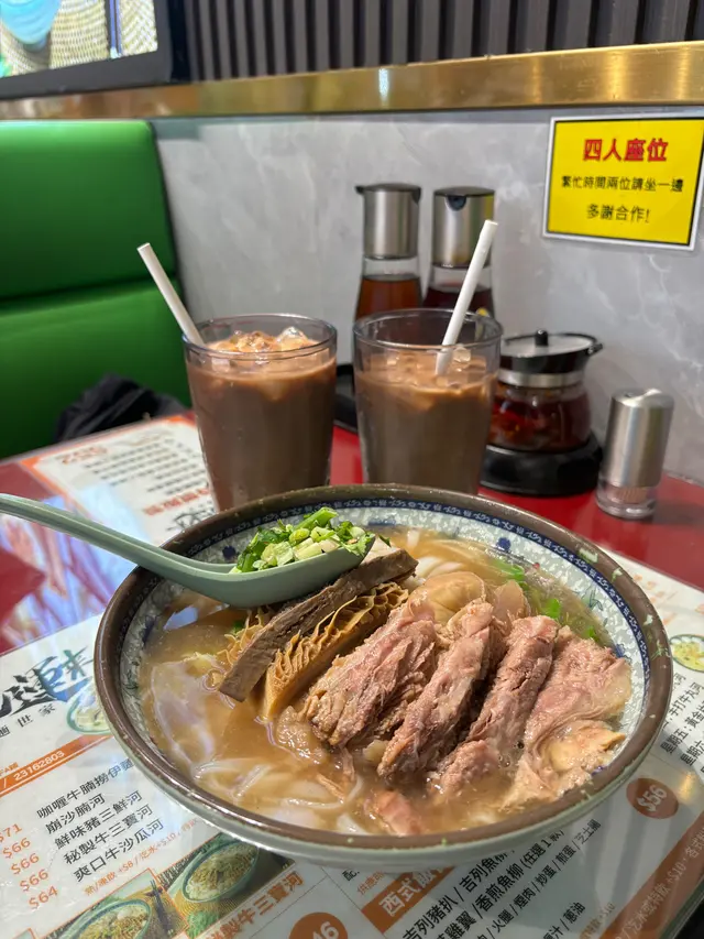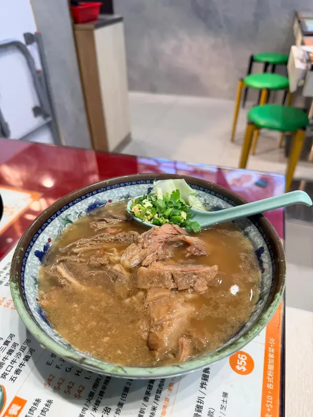 我今日專登去試佢哋嘅牛沙瓜拼崩沙腩撈粗麵,真係冇令我失望!崩沙腩係牛嘅橫隔膜位,筋膜同肉相間,佢哋炆得夠腍身之餘,個汁又好香濃,食落脂香滿溢。牛沙瓜即係牛嘅第四個胃,口感爽口彈牙,清洗得好乾淨,完全冇腥味。粗麵撈勻啲腩汁,真係非常惹味。另外叫咗個油菜,$20有交易,份量都幾多,可以揀腐乳醬或者腩汁,叫腩汁可以撈返個撈麵更濃味。最驚喜係個炸魚皮,$20就有一碟,脆卜卜。餐廳環境光猛乾淨,坐落幾舒服。佢哋最近仲推出咗$29外賣,喺銅鑼灣區來講,性價比真係爆燈,好適合打工仔或者想快脆食個lunch嘅人。…查看更多