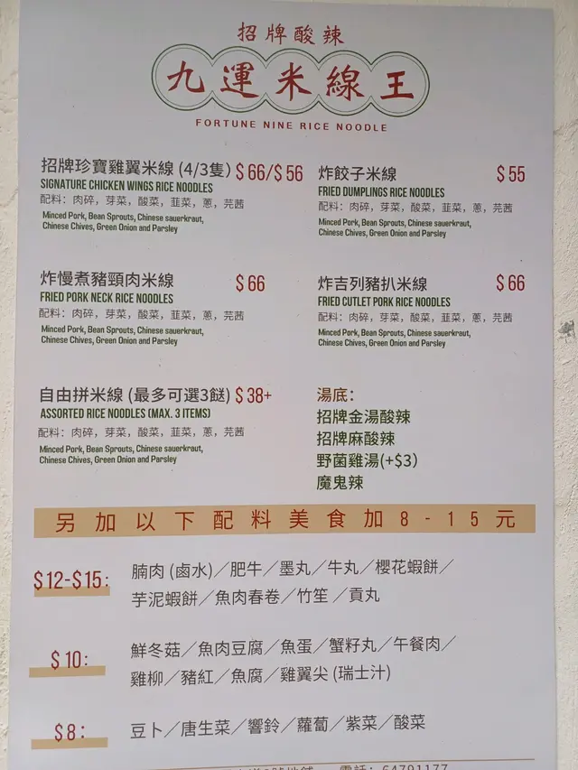 最近成日都掛住九運米線王既世一雞翼🥹,所以二次回訪再去食返佢地既金湯酸辣湯底米線。對我黎講,呢間米線店真係幾特別,因為完全吾用味精同醋精,湯底全部用豬肉熬出黎,配料選擇又多又特別,令成碗米線好實在。 .今次照舊點左必食既 「招牌秘製珍寶雞翼米線 $66」。金湯酸辣湯底呈現金黃色澤,一入口就先有溫柔酸香,之後辣勁慢慢滲出黎,辣得黎吾會搶走湯既鮮香味。米線滑溜吸湯,配埋酸菜、豆卜、肉碎、芽菜、蔥、韭菜、芫荽,酸酸辣辣又層次好足。至於雞翼就係另上,四件都炸到外皮金脆,咬落即刻「咔」一聲,入面肉質軟熟多汁,沒有冰鮮味,味道帶少少甜又帶黑椒香,食到中途已經好想再追加一份🤣。另外仲可以加配日本爆汁脆皮腸(+$14),真係吾同一般雞肉腸,皮薄一咬即爆汁,肉味香濃,好岩愛食腸既人。 .之後仲叫左「自選九運小鍋米線 $38」,湯底都係揀番金湯酸辣,辣酸比例真係幾岩口味。加配既香菇貢丸(+$12)好有彈性,咬開時香菇既清香同肉香一齊散出黎;肥牛(+$12)切得薄又嫩,湯底滲透到每片牛肉,食落滑溜香口;再加多幾條日本爆汁脆皮腸(+$14),成鍋米線即刻由普通升級到滿足感爆棚😆。 .飲品方面,我揀左 無糖可樂 $6,配炸物真係冇死錯人,冰涼爽口又解膩;另一款係 支裝豆漿 $10,豆香濃郁得黎吾會過甜。.仲食埋一份 特色拼盤 $38,拼盤包括炸櫻花蝦餅同魚肉春卷。蝦餅外層薄脆,蝦香同油香好搶;魚肉春卷皮脆而薄,魚肉餡滑身帶微甜,兩款一齊食好似小食時間咁開心🤭。 …查看更多