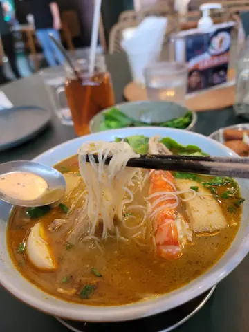 特此聲明,此食評「自費」親自去試食,沒有任何廣告成分!此店裝修很有馬來亞格調,地方寬落,裝修雅致…. 令人感覺舒服!因為係下午2點過後,所以,點選了lunch set,泰式咖喱魚餅,娘惹叻沙,及冷莘水果茶冷萃水果茶,係蜜桃茶,很清甜,有桃的香味,很冰凍泰式咖喱魚餅,香茅味很香濃,魚餅外脆內嫩,魚份量頗多,有驚喜!主菜- 娘惹叻沙,外觀靚,顏色艷麗,令人增加食慾。叻沙湯底很香,入口很滑,很mild,頗順喉!材料- 豆卜,魚旦,炸魚角,鷄絲,半隻旦,蝦,畧嫌餸料少了點!稍為失色,係豆卜未浸林,未入味,蝦不太新鮮,肉質硬實!鴛鴦麵,油面及米粉,份量很多,味道尚不錯!不過,「面多餸少」!有機會再試其他!…查看更多