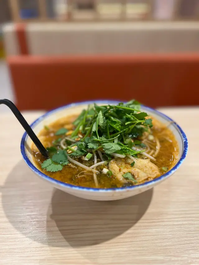 去開藍田,差不多食飯時間,見到啟田商場對面有呢間米線叫做九頭鳥,個名咁得意一於入去試下入到去發現裝修幾別緻,個感覺有少少似以前嘅茶居,QR code落單,上菜都幾快等嘢食上枱嘅時候,見到枱上面有一樽醃蘿蔔,貪過癮夾兩粒食下,酸爽脆口,正👍🏻清湯過橋米線($56)大碗、足料!個人最愛豬潤,爽!滑!彈!最重要係唔韌亦唔腥酸辣豬扒米線($50)酸辣揀咗2,足味夠辣,份量十足,女士未必食得曬一碗落單時可以再個人化啲,要多酸之類豬扒大件,炸粉好薄上菜時已經剪開一塊塊,食起嚟好方便!霸王雞翼($25)熱辣辣,調味足夠唔會太鹹,好食!下次會叫五隻!…查看更多