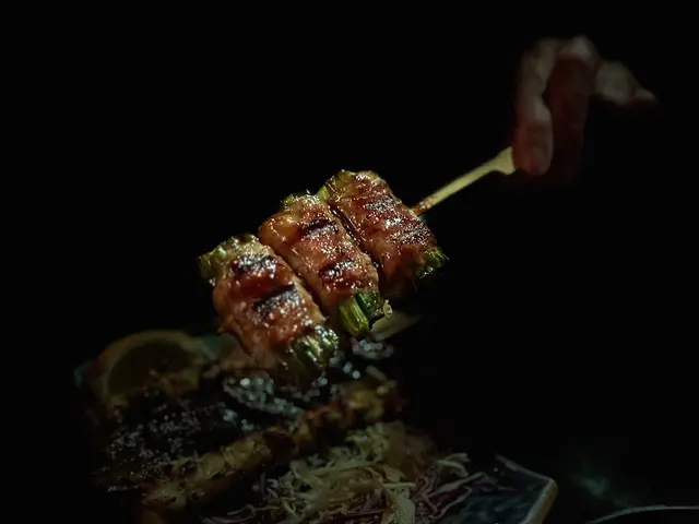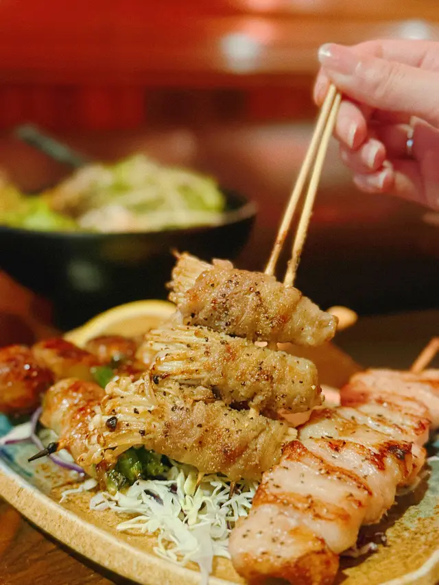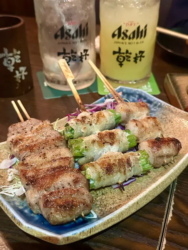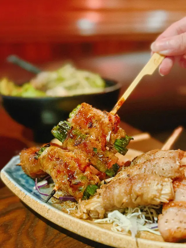 雞柳串上灑著香料,搭配著清新的京蔥,讓整體的味道層次更加分明。雞肉的鮮嫩與京蔥的清香相互輝映,令人食指大動