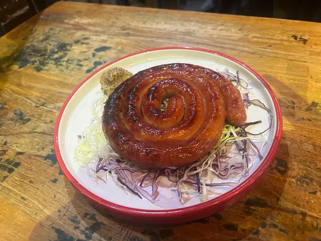 肉腸經過精心燒烤,外焦內嫩,油脂在火焰中融化,散發出誘人的香氣。每一口都充滿了肉汁,令人陶醉