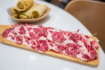 價錢$228/位(+10%)啤酒汽水任飲,入座限時兩小時。✨竹笙椰子雞鍋味道清甜,加入肉類同埋大量蔬菜繼續煲,會越嚟越香甜🥸✨手切本地吊龍肉·安格斯封門柳 ✨安格斯牛小排 ·安格斯肥牛冇諗過呢個價錢會食到手切牛肉😶🌫️ 每款牛肉各有風味同口感,肉味濃郁。當然係第一轉叫嘅牛肉係最靚,但第二三轉都唔差,唔會變咗超薄切同劣質牛。✨橡果黑毛豬肉肉質細嫰,唔蘸調味料就咁食已經幾好味。✨酒香鴨舌Encore咗幾次嘅小食!✨椒鹽豆腐粒·吉列墨魚餅·椒鹽粟米喺火鍋店食炸物好似有啲傻🙂↔️ 但估唔到擺碟整到拼盤咁,椒鹽味恰好,香口惹味,出奇幾有鑊氣!另外牛脷心、黑柏葉、牛骨髓、花雕雞子都係任食,比較少見,唔係周圍都有得食。