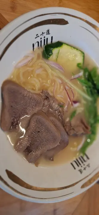 一開始聽餐廳名以為只有二十道菜,原來真正指食物二十項元素,首先五味(醬油、鹽、酒、味醂同醋)、然後五色(白、茶、赤、藍、黑),跟住五法(刺身、煮物、燒物、炸物、漬物),最後五度(溫度、熱度、濃度、態度、深度)。20度,二十道就可以創造出無窮無盡嘅美味菜式。餐廳用左吧台式設計,客人可以近距離觀看部份料理過程,令人彷如置身福岡屋台。前菜叫左海帶尖同芥茉螺肉,芥苿螺肉幾爽脆,滲透芥茉辣味好過癮。海帶尖一樣好爽脆,非常開胃。- 燒牛舌老闆話燒牛舌係餐廳best seller,外皮燒到微焦,肉質顏色粉嫩,入口香甜,而且煙韌多汁,非常出色!牛舌下面舖左洋蔥,洋蔥辛辣味好少,生食都好味,而且可以解膩。- 魷魚一夜干雪酒拉麵拉麵既配料同一般拉麵好唔同,餐廳換上青瓜黃瓜,有一種煥然一新既感覺。主角魷魚好大份,燒得恰到好處,肉質仍然煙韌而唔鞋口,鹹香味十足。我加左$30就有飲品同赤蝦剌身😍,赤蝦好大隻,肉質彈牙,味道鮮甜無比。湯底都非常特別,充滿蜆肉鮮味,而且加咗酒粕,令湯底散發淡淡酒香。- 牛舌拉麵餐廳推出左一項萬聖節限定菜式,6:30pm後限定供應,就係原條牛舌拉麵。湯底一樣係雪酒湯底。老闆切成一片片之前仲俾我哋玩一玩😂,一條軟條牛舌可以切成十幾片,肉質非常軟稔😍 。整體而言,每道菜式都好出色,拉麵有驚喜呀,性價比高。今晚食咗好多牛舌,無論牛舌拉麵定牛舌心都好出色,職員服務質素都好好👍🏻…查看更多