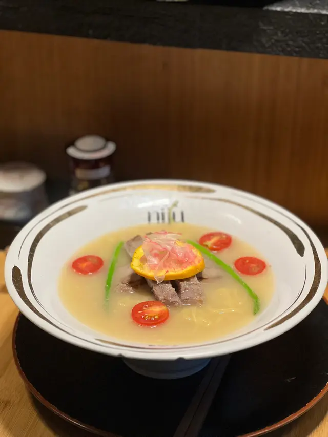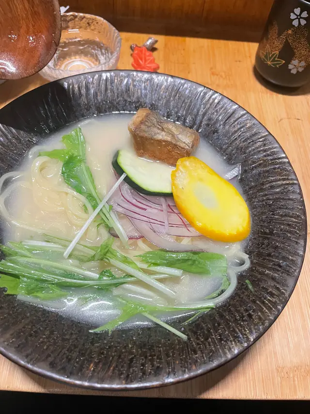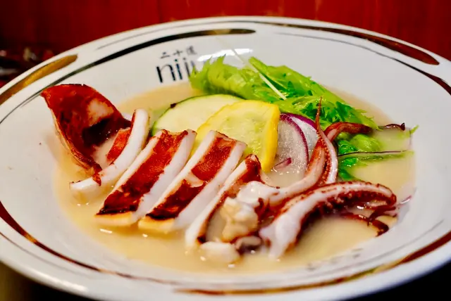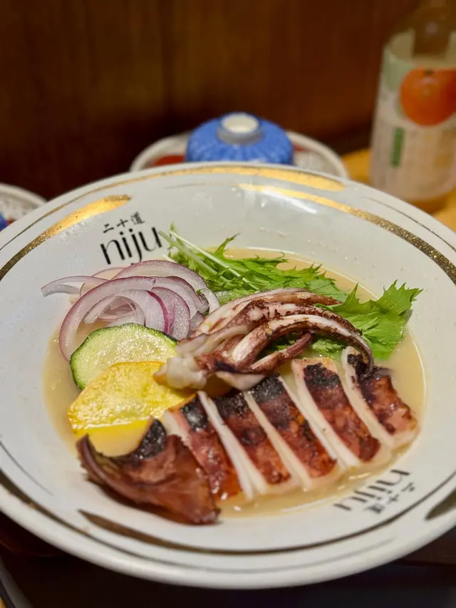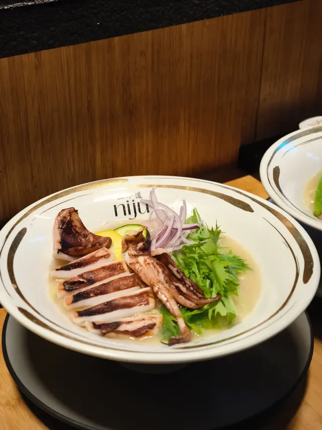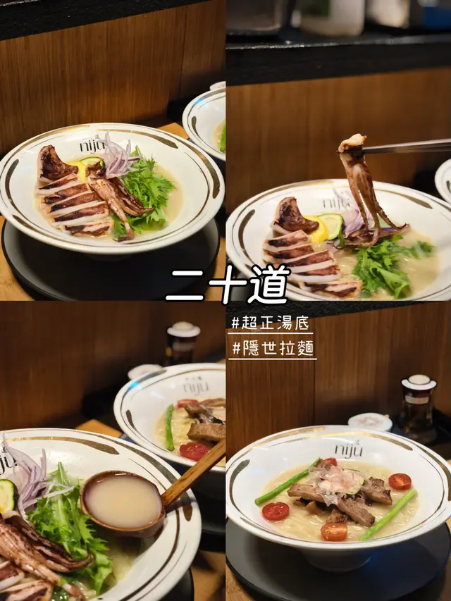 一開始聽餐廳名以為只有二十道菜,原來真正指食物二十項元素,首先五味(醬油、鹽、酒、味醂同醋)、然後五色(白、茶、赤、藍、黑),跟住五法(刺身、煮物、燒物、炸物、漬物),最後五度(溫度、熱度、濃度、態度、深度)。20度,二十道就可以創造出無窮無盡嘅美味菜式。餐廳用左吧台式設計,客人可以近距離觀看部份料理過程,令人彷如置身福岡屋台。前菜叫左海帶尖同芥茉螺肉,芥苿螺肉幾爽脆,滲透芥茉辣味好過癮。海帶尖一樣好爽脆,非常開胃。- 燒牛舌老闆話燒牛舌係餐廳best seller,外皮燒到微焦,肉質顏色粉嫩,入口香甜,而且煙韌多汁,非常出色!牛舌下面舖左洋蔥,洋蔥辛辣味好少,生食都好味,而且可以解膩。- 魷魚一夜干雪酒拉麵拉麵既配料同一般拉麵好唔同,餐廳換上青瓜黃瓜,有一種煥然一新既感覺。主角魷魚好大份,燒得恰到好處,肉質仍然煙韌而唔鞋口,鹹香味十足。我加左$30就有飲品同赤蝦剌身😍,赤蝦好大隻,肉質彈牙,味道鮮甜無比。湯底都非常特別,充滿蜆肉鮮味,而且加咗酒粕,令湯底散發淡淡酒香。- 牛舌拉麵餐廳推出左一項萬聖節限定菜式,6:30pm後限定供應,就係原條牛舌拉麵。湯底一樣係雪酒湯底。老闆切成一片片之前仲俾我哋玩一玩😂,一條軟條牛舌可以切成十幾片,肉質非常軟稔😍 。整體而言,每道菜式都好出色,拉麵有驚喜呀,性價比高。今晚食咗好多牛舌,無論牛舌拉麵定牛舌心都好出色,職員服務質素都好好👍🏻…查看更多