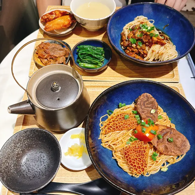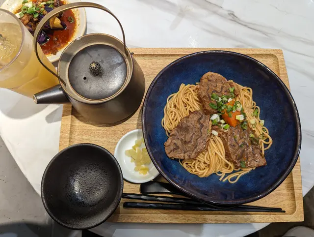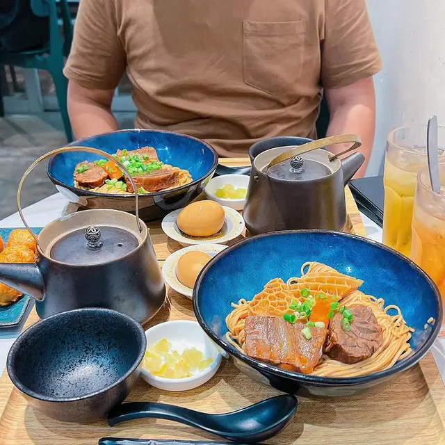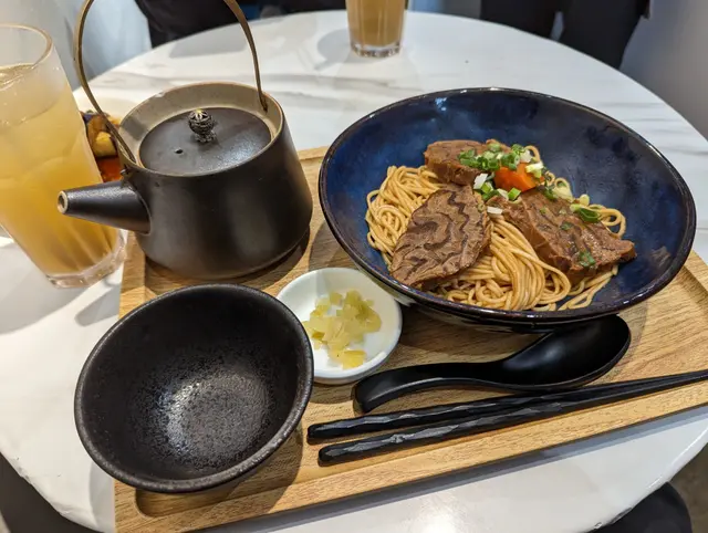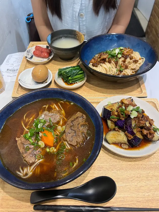 好耐之前已經有朋友介紹呢間台灣麵話好好食平時嚟親都係食隔籬間Cafe今次就試吓呢間新嘢啦佢Menu啲選擇唔多有拌麵有湯麵我叫咗個手工肉燥拌麵定食朋友就叫咗紅燒牛腱麵另外加咗個手工肉燥茄子可能係拌麵我覺得個麵嘅味道麻麻啲滷肉都唔係特別好食不過麵就好滑而其他嘢我就覺得好好食牛腱好滑好入味個手工肉燥茄子都好好味仲有我最鍾意嘅糖心蛋同台灣腸另外order咗蜂蜜柚子茶同綠茶菊花蜜成餐我覺得啲味道都唔錯可以帶媽咪嚟試吓不過就覺得座位有啲迫張枱好細查看更多