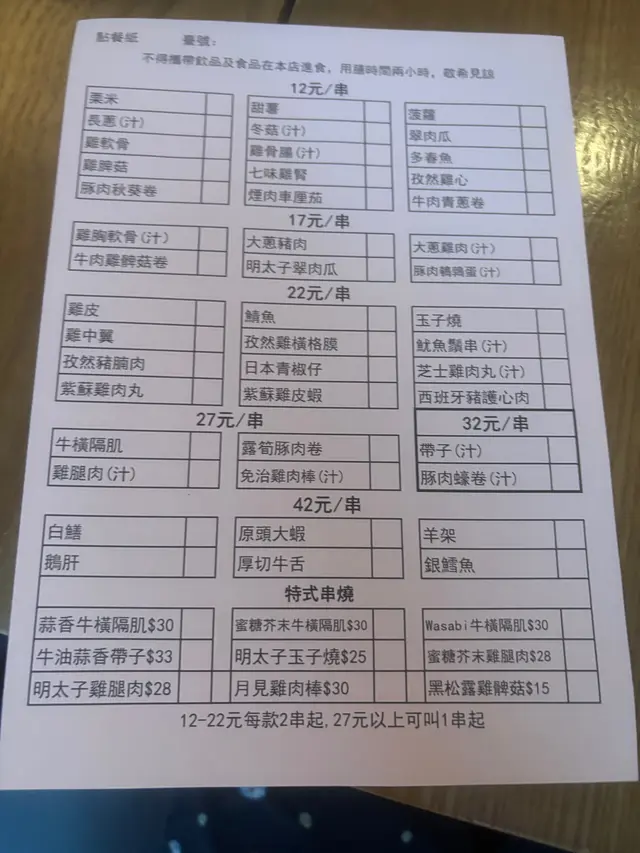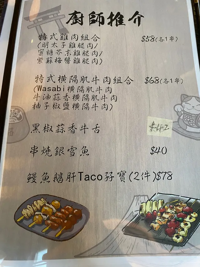 要食建議直接散嗌串燒。1-2人餐,周年優惠要參考多D其他評論。1-2人餐$198,menu有前菜,湯,串燒x4,烏冬/飯,甜品。只要有質素,份量少就唔會係問題。湯同飯都只有一細碗,”2人”的話有少少難一齊去食。應該有更好既做法,分兩細細碗?否則可能有人會覺得少不便。 周年優惠有其他留言評個牛舌芯似橡筋,唔似橡筋,但該晚感覺都少難𡁻。食完1-“2人”餐 + 周年優惠未夠喉,再散嗌$600左右落樓。感覺散嗌相對性價相對較高少少,質素相對比較高少少。好食:玉子燒,雞軟骨。唔推雞腎,牛舌芯,同其他評論同感,自己睇。好處:星期六日其他串燒鋪,唔預約相對難有位置。“二把手” ,相對易有位置,位訂無咁困難感覺唔到服務有咩問題,有service有態度。無咩hard feeling。下次可能要Openrice睇多少少食評…查看更多