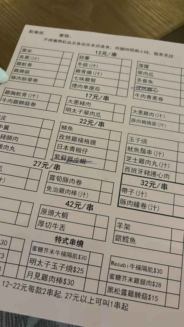 旺角竟然有$10串燒食😱一於上去「二把手」睇下係咪真嘅先👀.火炙鰻魚TACO🍙炸紫菜上放上醋飯🍚鰻魚鮮嫩多汁🤤配上青瓜絲和木魚🥒🐠味道豐富💯.帶子🐚鮮嫩厚肉😌.豚肉蠔卷🦪蠔肉肥美鮮甜😍同時充滿豚肉肉汁🐷加上燒汁,好味道😗.牛横隔肌🥩牛肉肉質結實,肉味濃郁😋微微焦香,加上胡椒🧂好惹味.露筍豚肉卷🎍.紫蘇雞皮蝦(2串)🍤香脆又充滿彈性嘅雞皮🐓包住爽口蝦肉🦐配上紫蘇葉獨有香味🌱中和咗雞皮油脂☺️.豚肉鶴鶉蛋(2串)🐖醬燒薄片豚肉包住鶴鶉蛋🥚肉香同蛋香並在👍🏻.牛肉雞髀菇卷(2串)🐄牛肉配上Juicy雞脾菇🍄🟫新穎又好味😛.Grape Juice Soda🍇…查看更多
