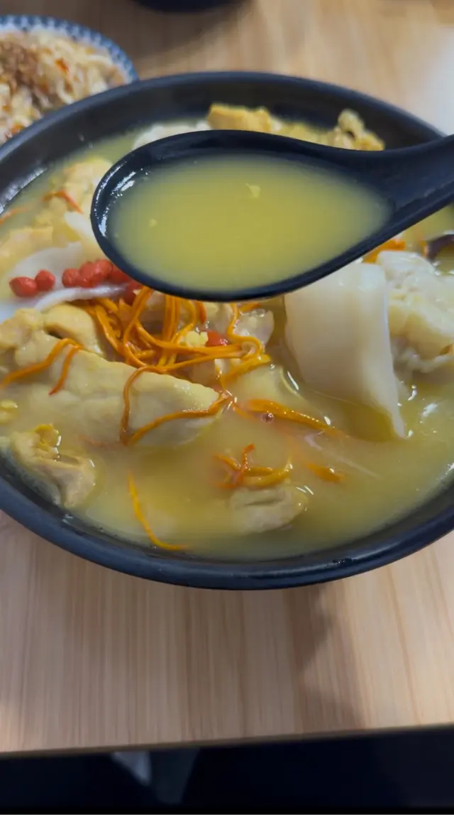 我會話目前為止呢間米線係我心目中嘅number,自從有一次朋友介紹食完之後,耐唔耐都會想食😚可惜因為佢地營業時間短咗,所以有時想食時間都未必啱😗佢地營業時間星期一至星期六11:30-16:00,星期日休息⭐️繁忙時間食一定要齊人先可以入去⭐️▪️黃酒藥膳雞米線$59⭐️⭐️⭐️⭐️⭐️📌推薦呢個食要會翻唔到轉頭,雖然佢哋其他都好吸引,但係都係最鍾意呢個😋佢哋嘅湯底好濃郁,濃郁得黎唔會覺得落咗味精,而且佢哋嘅藥膳因為加咗紅棗同黨參所以湯底會有啲甜甜地嘅味道😋佢哋嘅黃酒味道若隱若現,如果好鍾意酒味仲可以揀要多啲酒😚米線都有得揀軟硬程度,最後緊係要講埋佢哋嘅雞,佢哋嘅雞份量超級多,食落嫩口⭐️佢哋嘅雞會走雞皮,如果鍾意食雞皮可以食其他米線😗▪️失傳已久的豬扒$28呢個豬扒外脆內軟,個豬扒係瘦肉但係佢處理完之後係唔會嚡,不過覺得水準冇以前咁好😶🌫️▪️凍檸茶$7檸檬唔係好夠,揀少甜都會覺得甜味比較突出,同埋茶味都唔係好濃…查看更多