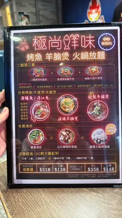 旺角人氣火鍋放題店《二鍋頭》,多款雞煲、烤魚、牛雜煲無限任食的豐富選擇與熱鬧氣氛。【極尚鮮味放題套餐】真係勢要滿足雞煲控同燒魚迷,最長可以慢慢歎足7個鐘,任食任飲嘆到夠!「極尚鮮味」套餐烤魚 羊腩煲 火鍋放題無限時任食套餐紅白酒任飲整個放題陣容極之澎湃,任食牛雜煲、4款口味烤魚、雞煲、牛尾煲、豬手煲通通入列,仲可以自由打邊爐,食材同湯底選擇超靚。旺角店更限定免費升級龍躉生蠔魚湯鴛鴦鍋,湯底鮮味爆棚,鮮甜得來又有海味香氣。二鍋頭三寶辣酒東風螺雞煲雞煲系列係靈魂招牌,除咗招牌醬香惹味雞煲之外,新增咗幾款新口味——重慶麻辣、泰式冬蔭、雙乳(咸牛乳加腐乳)同辣酒東風螺雞煲。今次我哋就揀咗辣酒東風螺雞煲,螺肉爽彈帶辣香,雞件滑嫩香濃,越食越惹味。配埋紅白酒任飲,邊嘆邊傾真寫意。烤魚:清江鱼再數烤魚系列,足足有六大口味選擇,包括新登場嘅冬蔭功同番茄味。清江魚肉質厚實細滑,我哋點咗冬蔭功味,酸辣勁醒胃,魚皮脆香、湯汁濃香四溢,超有層次感。免費升級鴛鴦湯底/龍躉生蠔魚湯鍋(旺角店限定)可免費升級為鴛鴦湯底,讓你同時品嚐兩種口味。旺角店現正推出「龍躉生蠔魚湯鍋」限定火鍋,並且無需額外加錢。限定湯底,特色在於用料足,龍躉魚塊及生蠔鮮甜,湯底滋潤,非常熱愛海鮮。火鍋配料:火鍋部分都唔失禮,食材靚料盡出:牛板腱、本地鮮滑牛、活海蝦、帆立貝、活蜆、墨魚仔等全部包含,仲有蟹籽墨魚滑、鳳城水餃、鮮蝦雲吞樣樣唔少。整體湯底香濃但唔死鹹,煮完食材仍保留鮮味。出品鮮美,蟹籽墨魚滑厚實、活海蝦、帆立貝、活蜆新鮮,鮮蝦雲吞一口已經感受到鮮甜滋味。性價比高,聚餐首選。餐廳環境熱鬧有氣氛,非常適合成班朋友開鍋小聚,配上七小時無限時放題時段,真係可以食得盡興、歎得過癮。 …查看更多